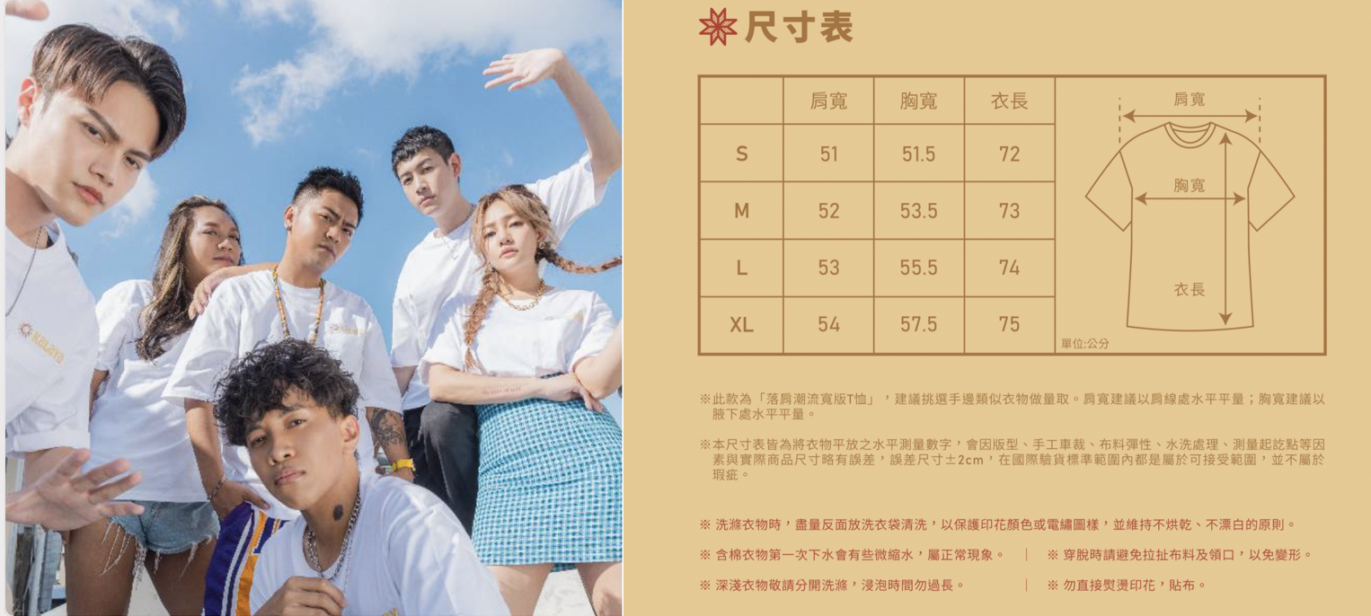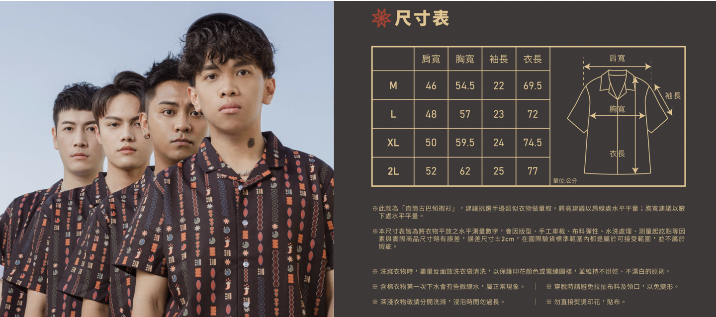 下單後須於報名表填寫尺寸及顏色,可參照以下尺寸表唷!