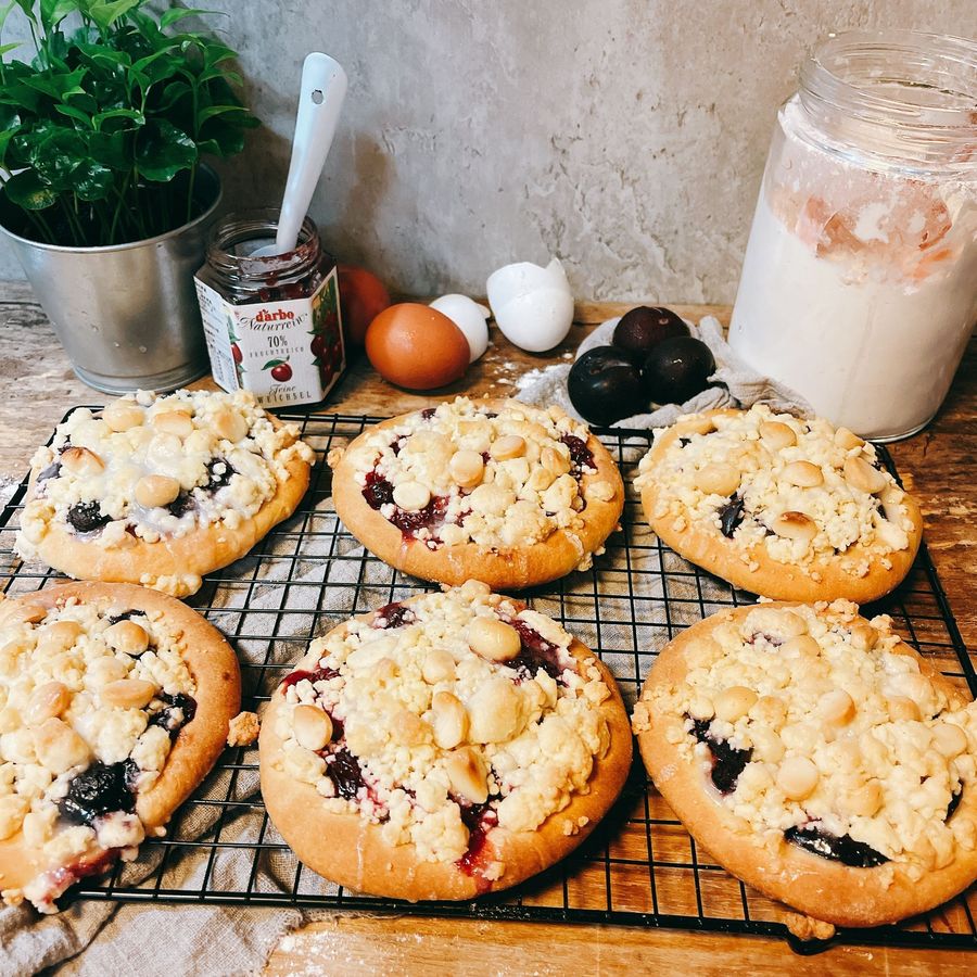 德國街頭美食!酸甜好滋味莓果奶酥餡餅Streuseltaler (Streuselschnecke)