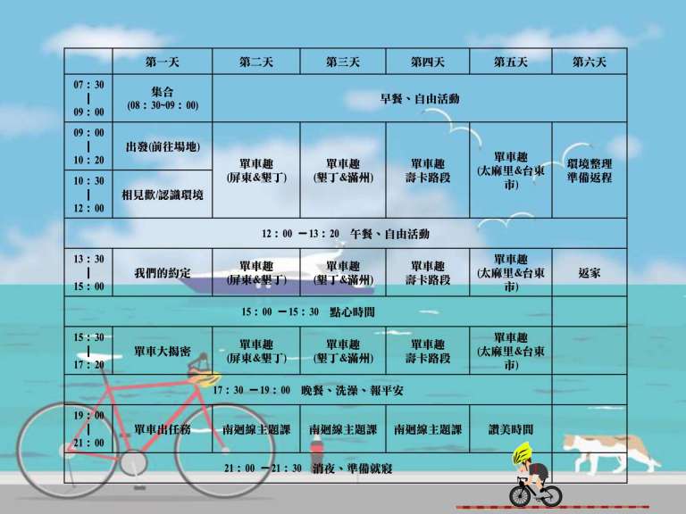 ※因應不同的路線安排,下方流程表僅示意日程表的安排,並非確切路線