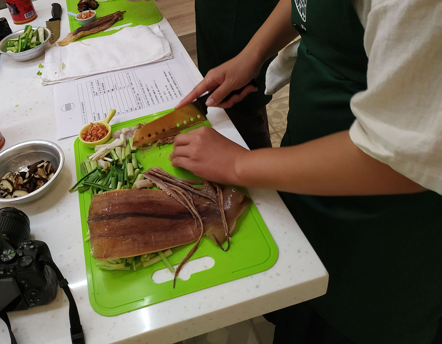 從食材開始,包括魷魚、蝦米、香菇、螺肉、蒜苗、豬肉……你將個別實際操作,並且瞭解每樣食材的處理方式。