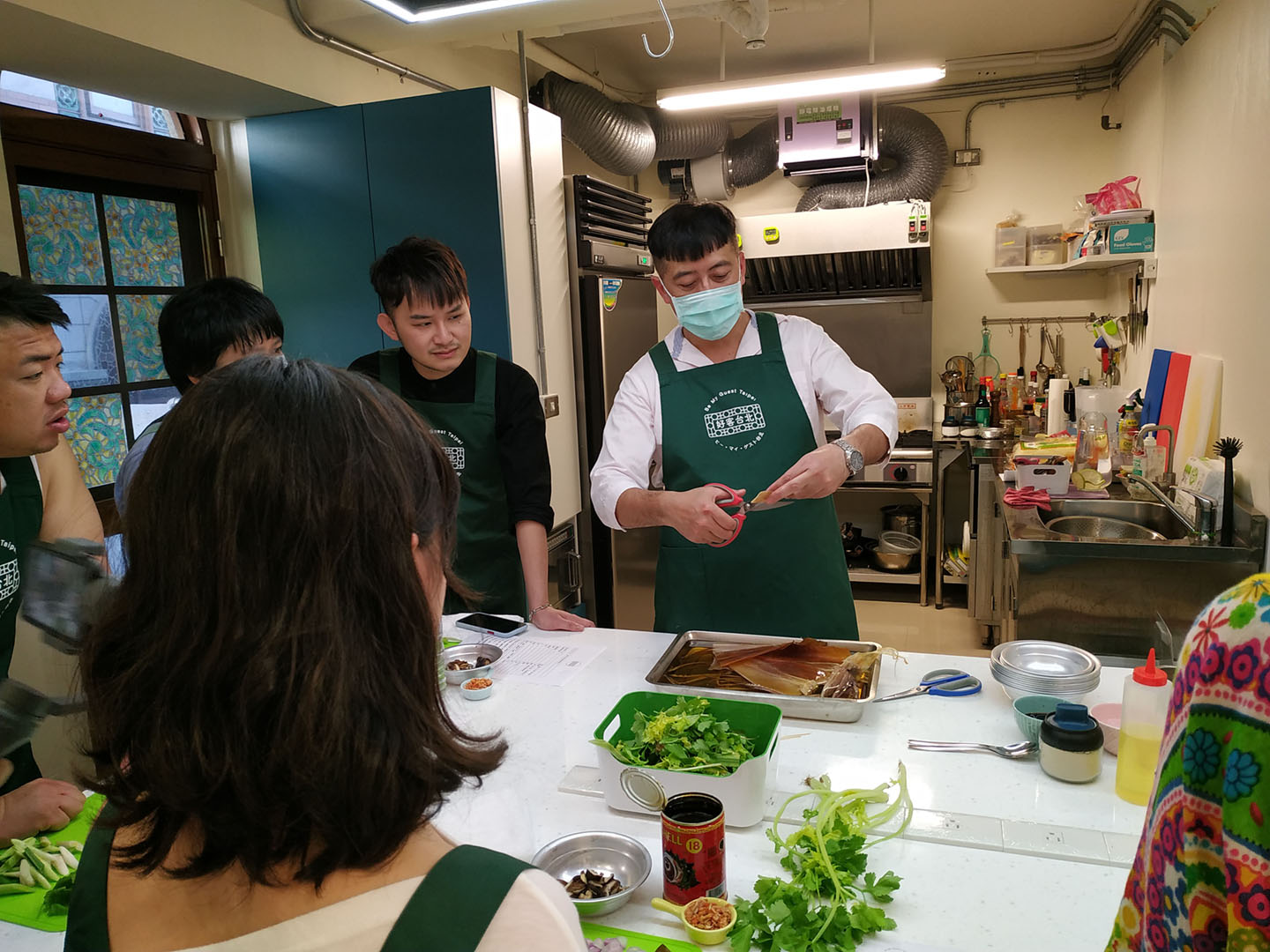 - 穿上特別設計的好客台北圍裙(贈品可攜回),來一杯免費的紅酒(或咖啡、茶、汽水),讓自己進入廚神的感覺中。