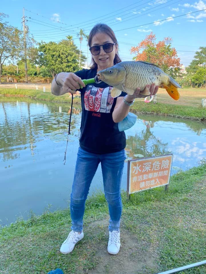 魚兒上鉤後,拍照留念,隨後放生