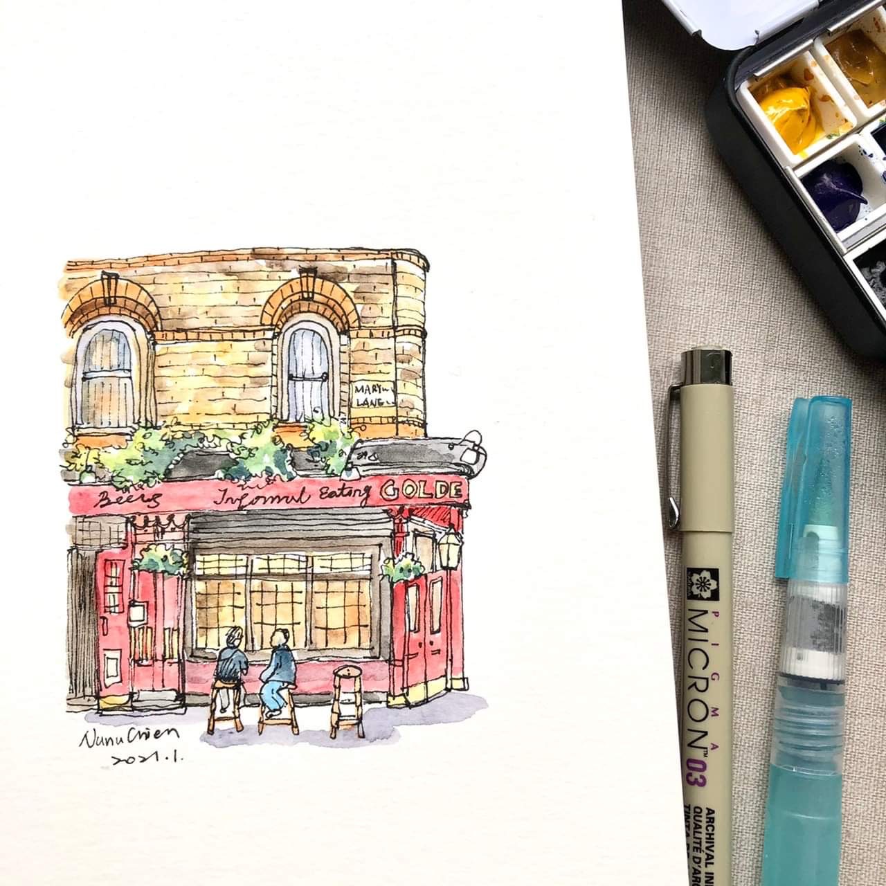 水彩速寫初體驗|倫敦咖啡廳