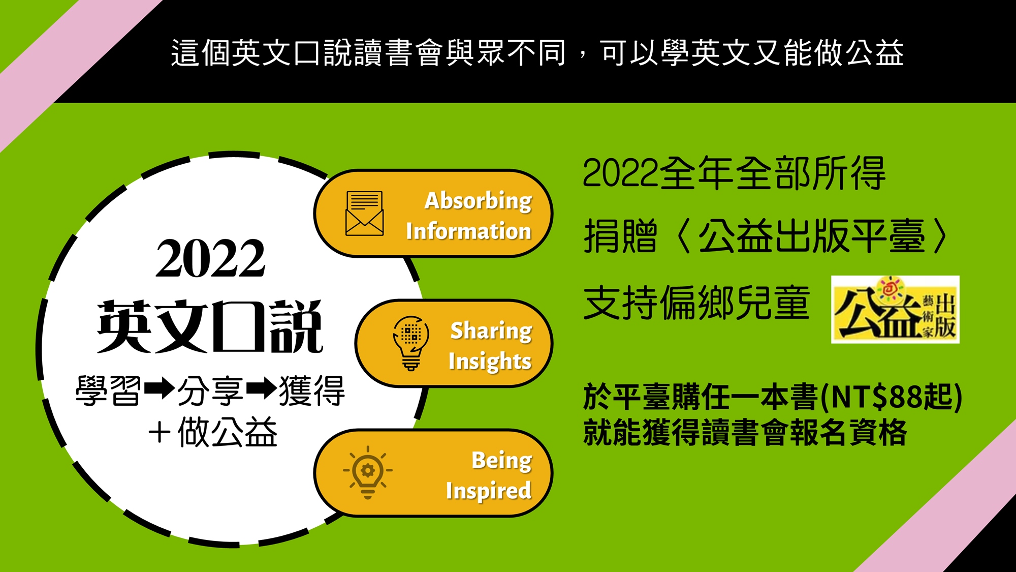 註:本主辦單位舉辦的全部活動都是免費,首次也不需要購書,要繼續參加才需在 ▍公益出版平台 ▍買一本電子書(新台幣八十八元起),而且買一次就能出席2022年同級數讀書會(分為初級和進階兩種),無其他隱藏費用。