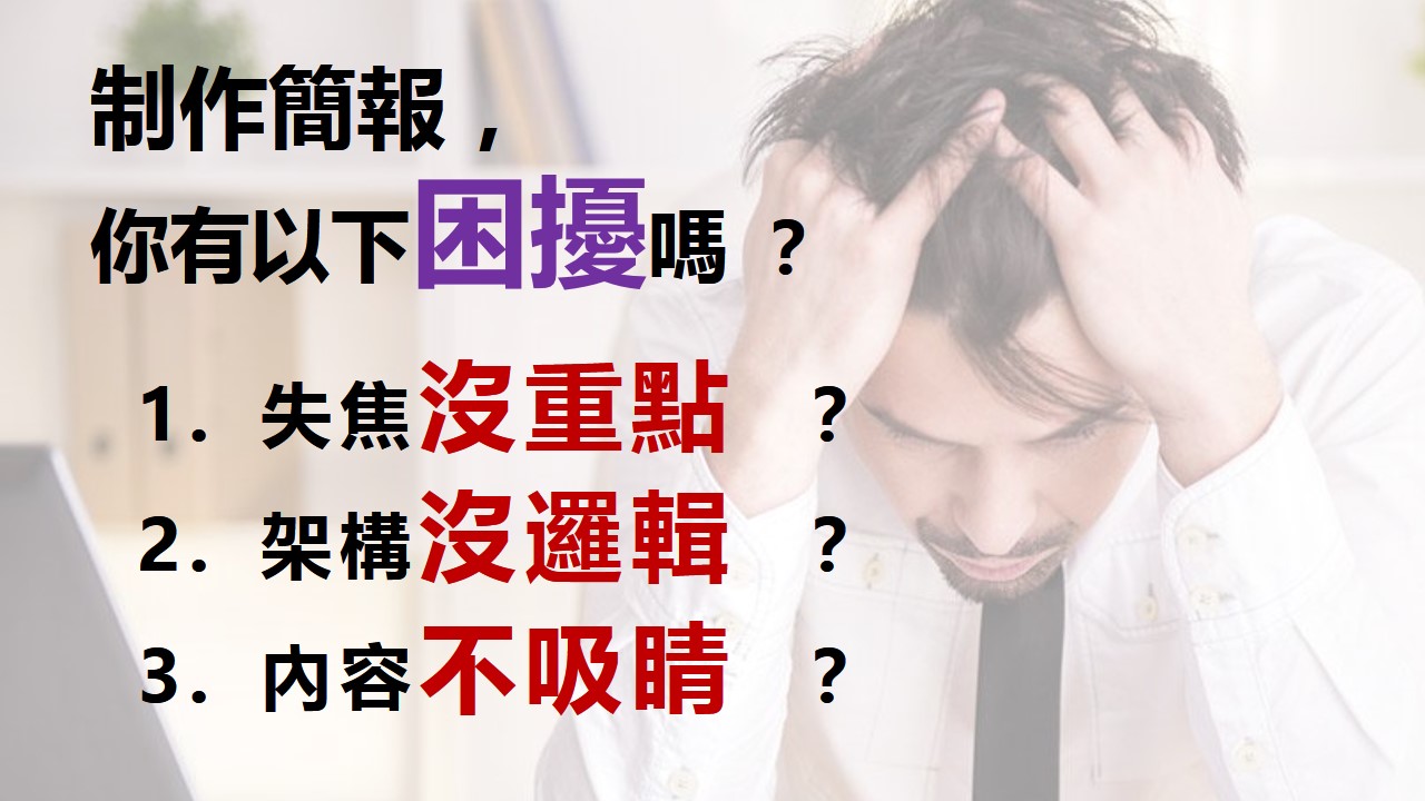 - 想要提昇簡報溝通力的業務、企業主或員工