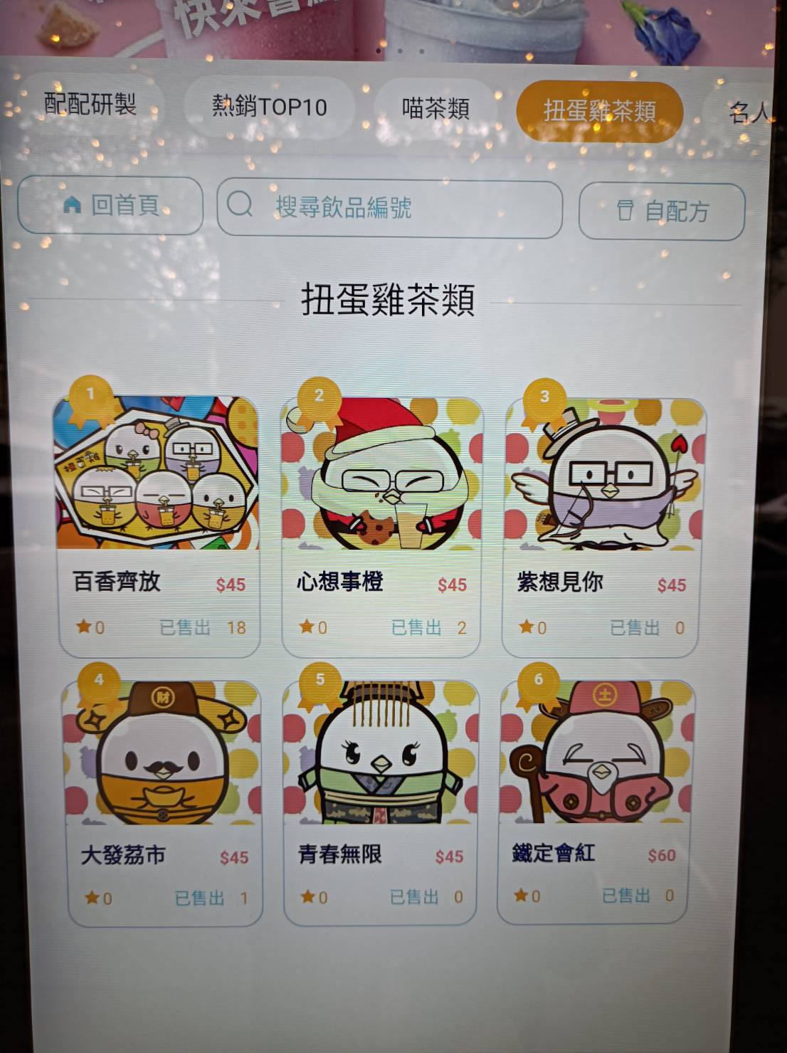 活動內容:扭蛋雞首次將扭轉元素與飲品結合,「百香齊放」、「心想事橙」、「紫想見你」、「大發荔市」、「青春無限」、「鐵定會紅」與你迎接新的一年,想轉運嗎?來杯扭蛋雞家族的特調飲吧!