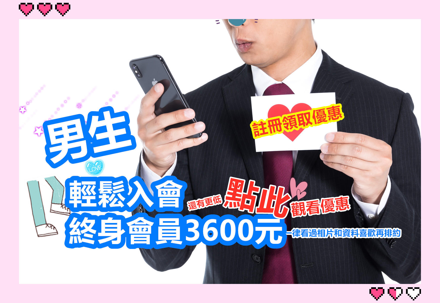 *男會員報名費699元(會員意指已完成面談認証,且已繳交報名費,觀看優惠!)