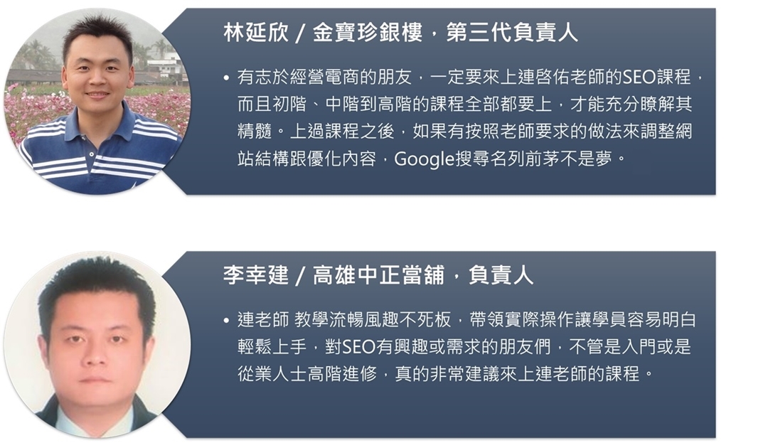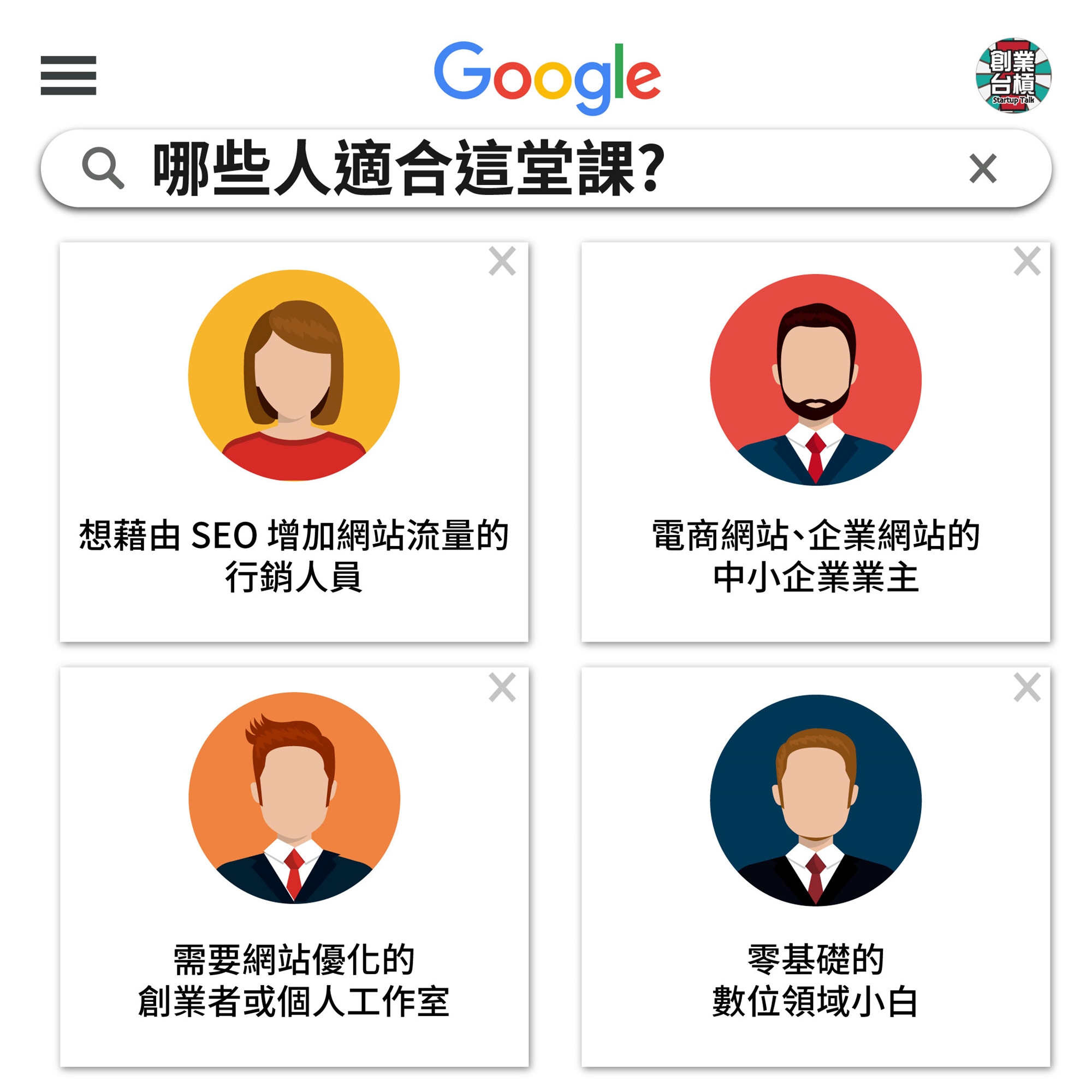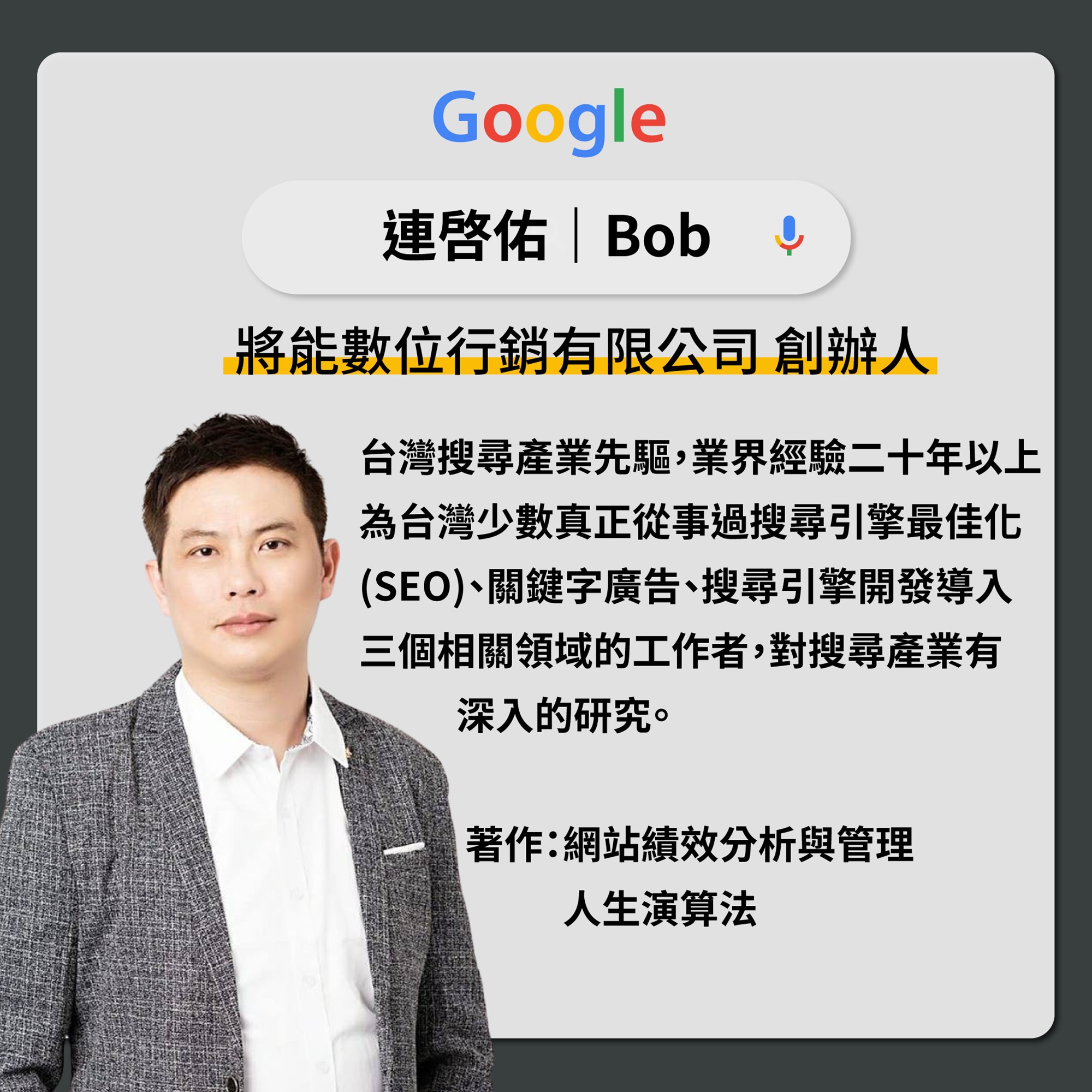 為台灣少數真正從事過搜尋引擎最佳化(SEO)、搜尋廣告、搜尋引擎開發導入三個相關領域工作者,對搜尋產業有深入的研究。將從最基本的SEO觀念起步,掌握網站架構、內容產出與關鍵詞布局的策略,以及針對搜尋引擎結果與使用者經驗的優化戰術,讓不懂程式的網路行銷人也能掌握提升網站排名的基本功!