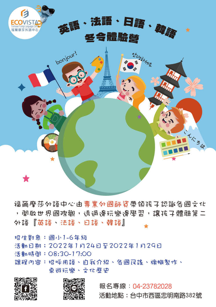2022寒假台中【福爾摩莎兒童國際體驗營】-讓孩子在快樂學習中與國外接軌! https://www.ecovista-fflc.com/news/2022winter.html (手機上可放大)