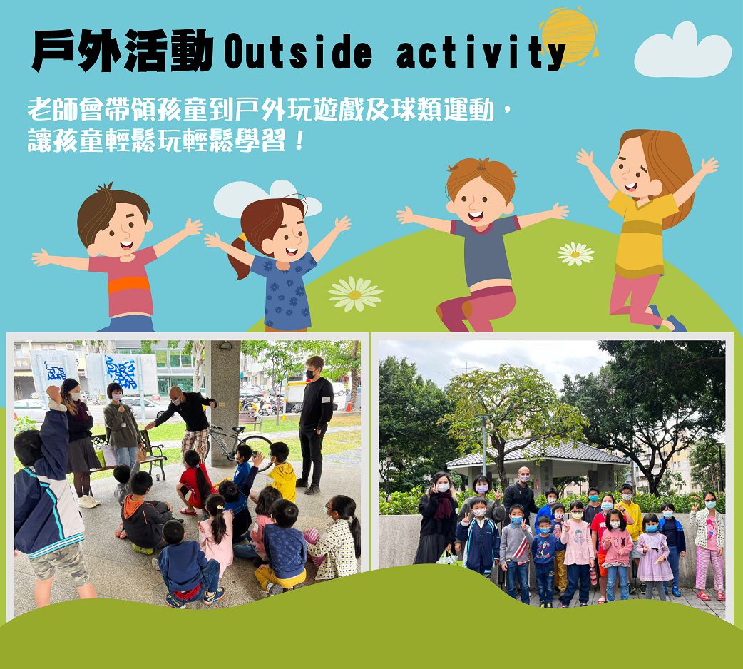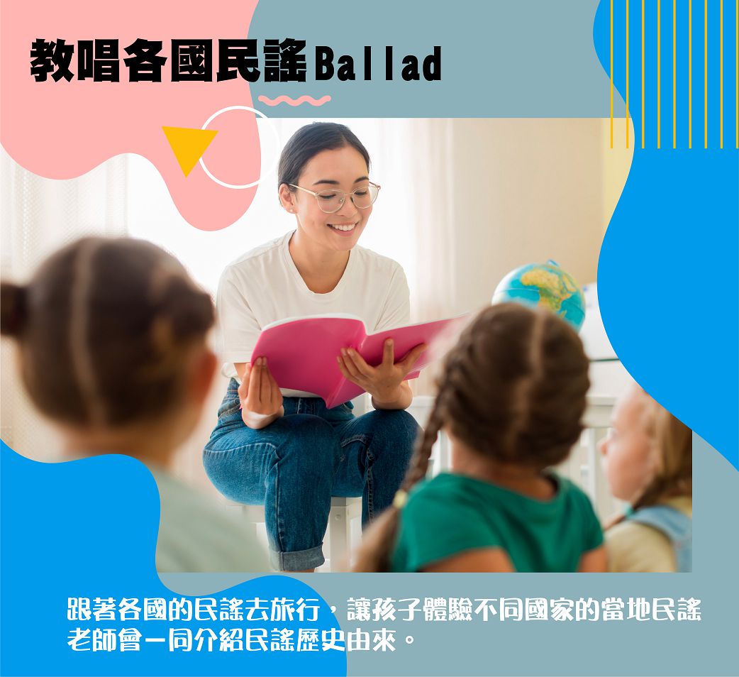 👉課程內容:招呼用語、自我介紹、各國民謠、旗幟製作、桌遊玩樂、文化歷史、戶外活動