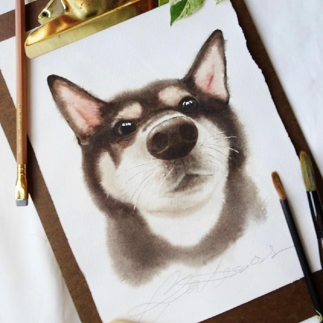 - 動物的描繪練習,教你畫出狗狗們盯著餐桌,渴望食物的濃濃大眼!運用水彩渲染的特性做出毛髮地質感!