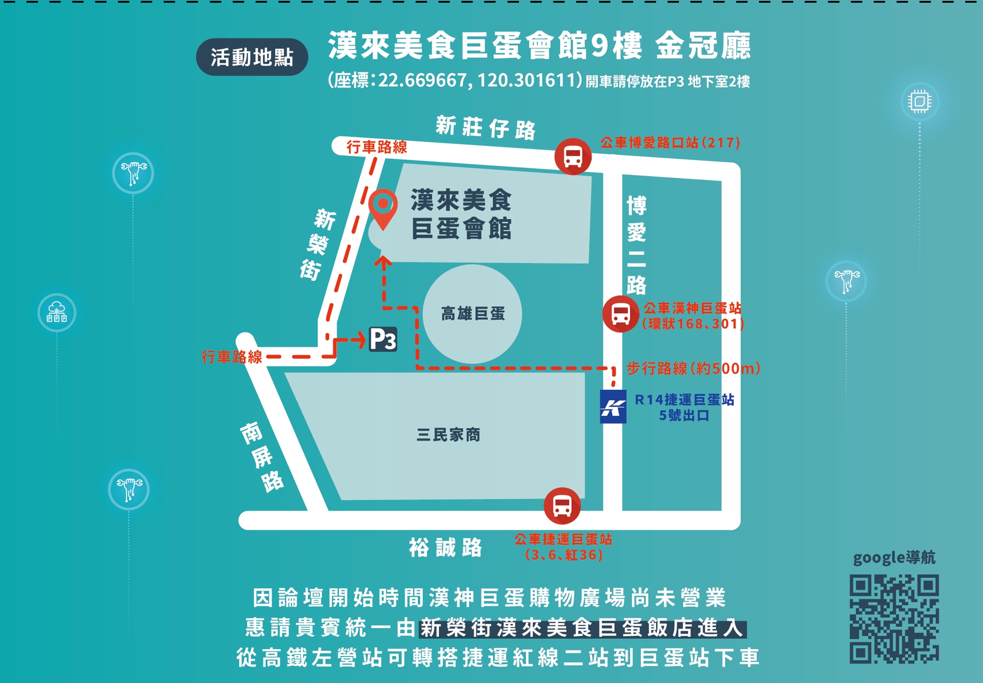 備註:因論壇開始時間漢神巨蛋購物廣場尚未營業,惠請貴賓統一由新榮街漢來美食巨蛋會館進入。