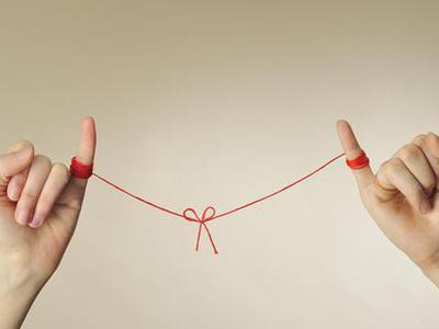 姻緣簿中有姻緣關係的未婚男女將以紅絲繩綁住!