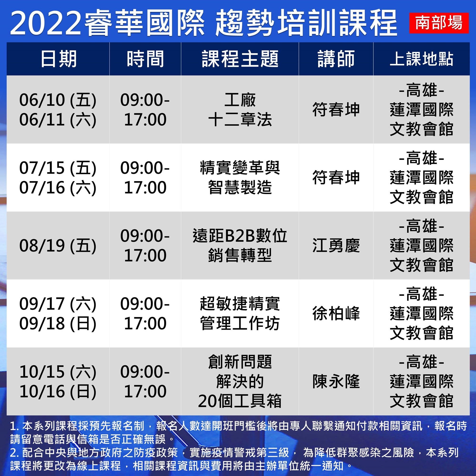 3. 配合中央與地方政府之防疫政策,實施疫情警戒第三級, 為降低群聚感染之風險,本系列課程將更改為線上課程,相關課程資訊與費用將由主辦單位統一通知。