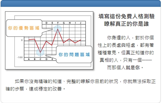 在來分析之前, 我無法專注, 無法決定, 每天失眠用混亂來形容自己並不誇張, 我也感受到自己有多渴望知道我到底怎麼了?在做測驗回答問題時, 就像在看著自己的過去, 坦誠的面對自己。即使我是糟透的, 錯誤或是失敗的!