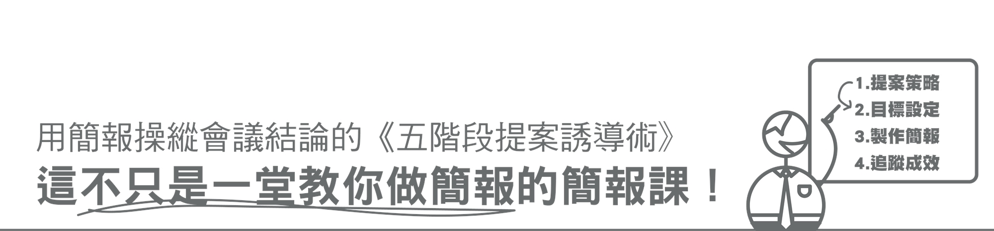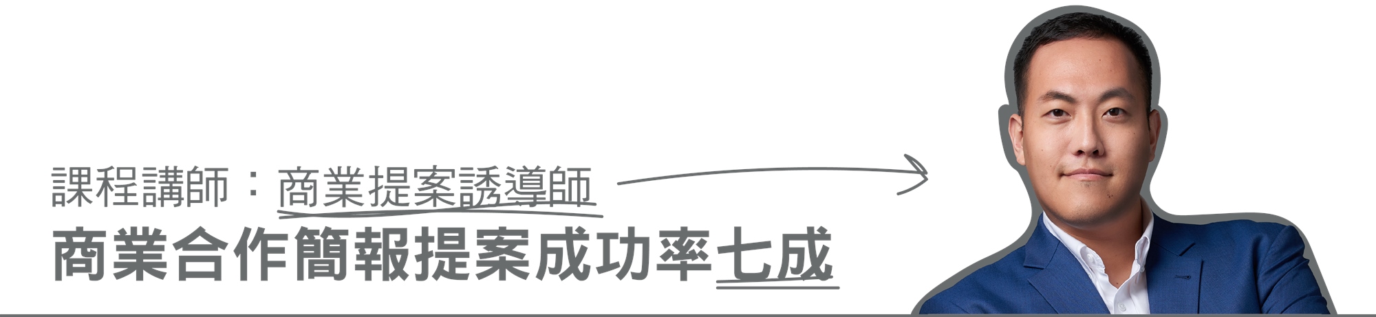 我將這些年累積的合作開發策略,一起匯集成本次的《五階段提案誘導術》課程。這不只一堂簡報課,而是一堂簡報的戰略課程。