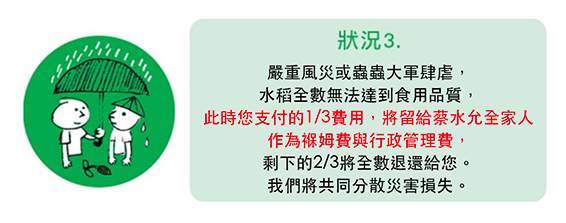 由於各位養父養母,完全跳脫了人類長久以來的消費模式,參與了生產過程與自然變化風險,本計畫不接受參加後中途退出,以確保與農友的承諾。以下將會是您可能面對的各種狀況,請您務必認同後再加入喔!
