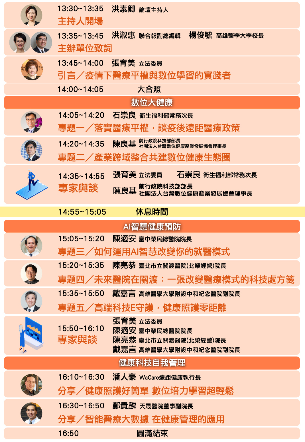 衛福部常務次長石崇良、前科技部長陳良基、立法委員張育美將由產業大環境角度切入。