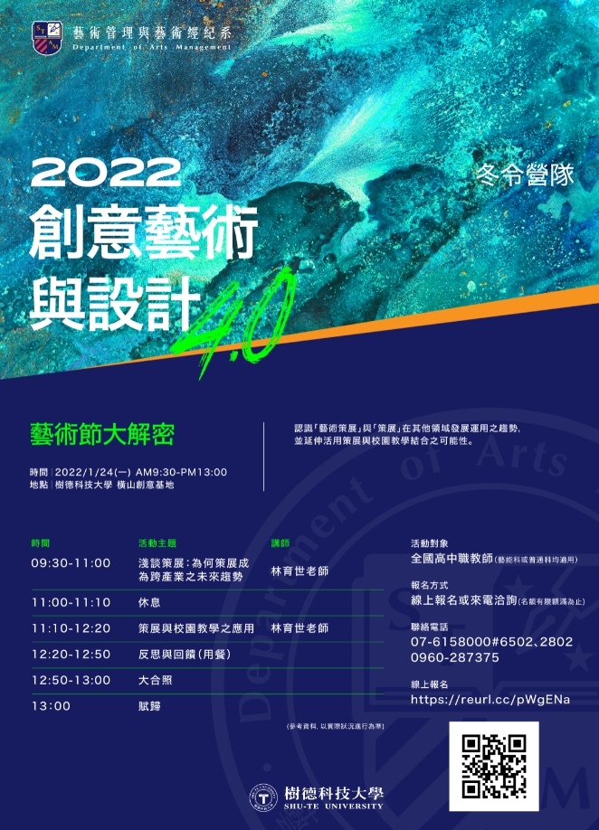 | 11:10-12:20 | 策展與校園教學之應用 | 林育世 當代藝術策展人 樹德科技大學藝管系助理教授 |