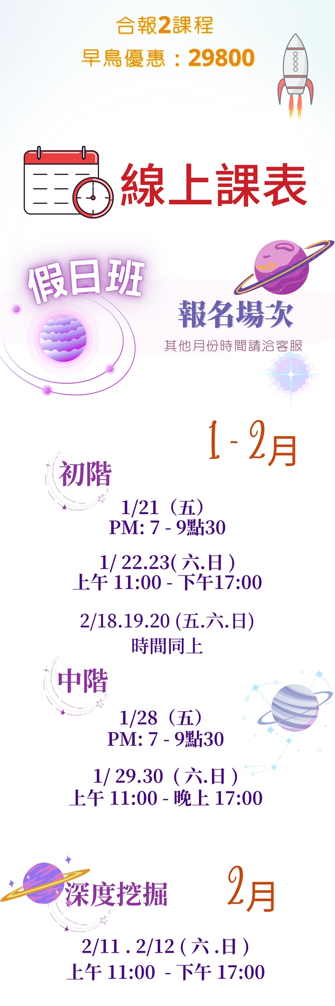 『 如已付款,時間不設限 』可改日期為下一次上課時間。
