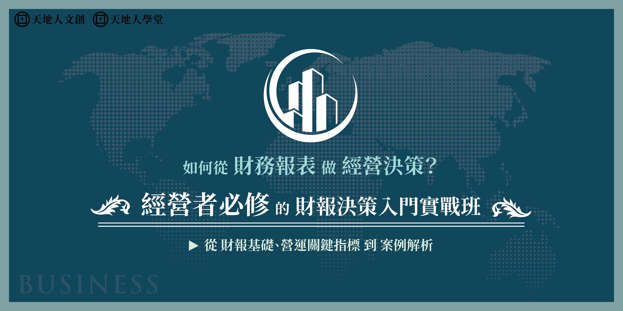 公司的價值取決於未來的現金流,唯有投入的資本獲得的利潤超過資本成本時,才能算是為企業帶來真正價值。因此看懂財務報表是每位管理者必須具備的能力。有鑑於此,天地人文創旗下天地人學堂特地規劃出「經營者必修的財報決策入門實戰班|如何從財務報表做經營決策?從財報基礎、營運關鍵指標到案例解析」,邀請到飛馬士企業&敏揚企管顧問公司執行長親授課程,以多年扎實的實務經驗由淺入深帶領學員瞭解財務報表的閱讀重點與企業指標分析,全面剖析企業經營策略與財務運作的四大核心技能:(1)企業營運活動與財務報表呈現的邏輯連結;(2)財務報表的閱讀及重點掌握;(3)企業經營的決策事項與判讀指標;(4)業界實際案例解析與問題探討,透過這門課程,協助你瞭解管理者如何結合財報分析與經營策略的實戰技巧與Know-how。