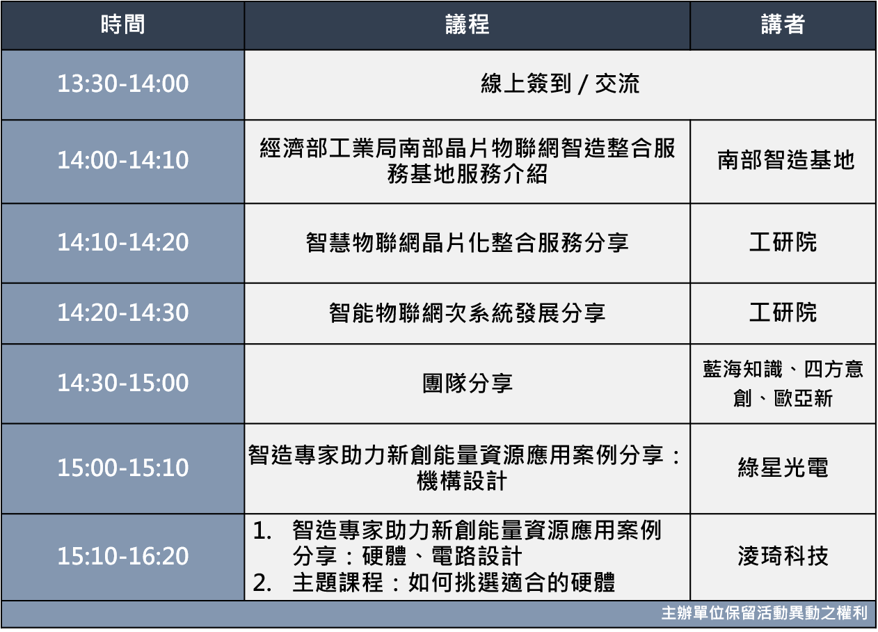 讓您快速了解AIoT產品開發的秘訣,透過多元應用和物聯網智造基地資源打造IoT產品, 一起開創屬於自己的AIoT產品,讓夢想中親手創作的產品也能生產販售