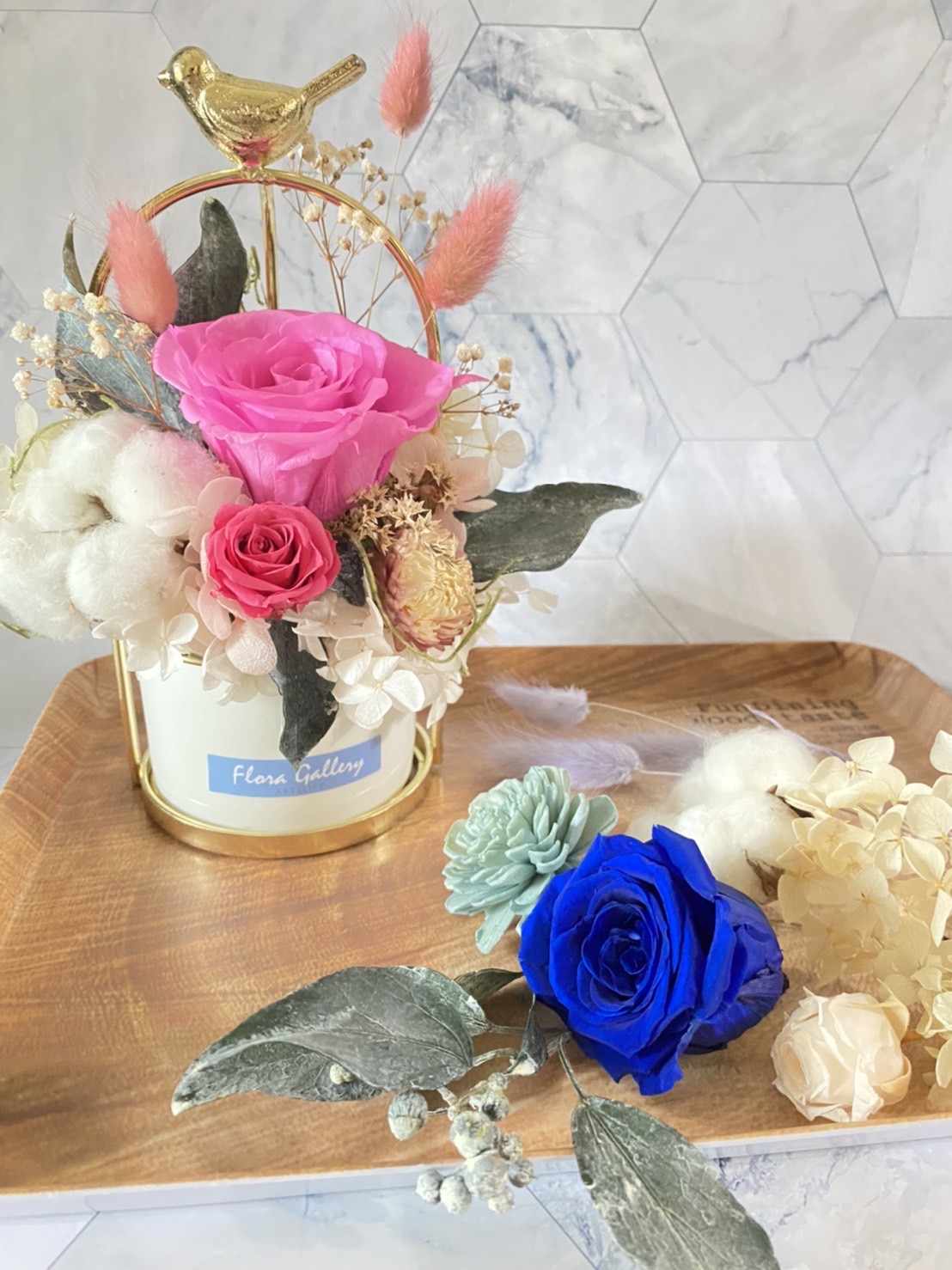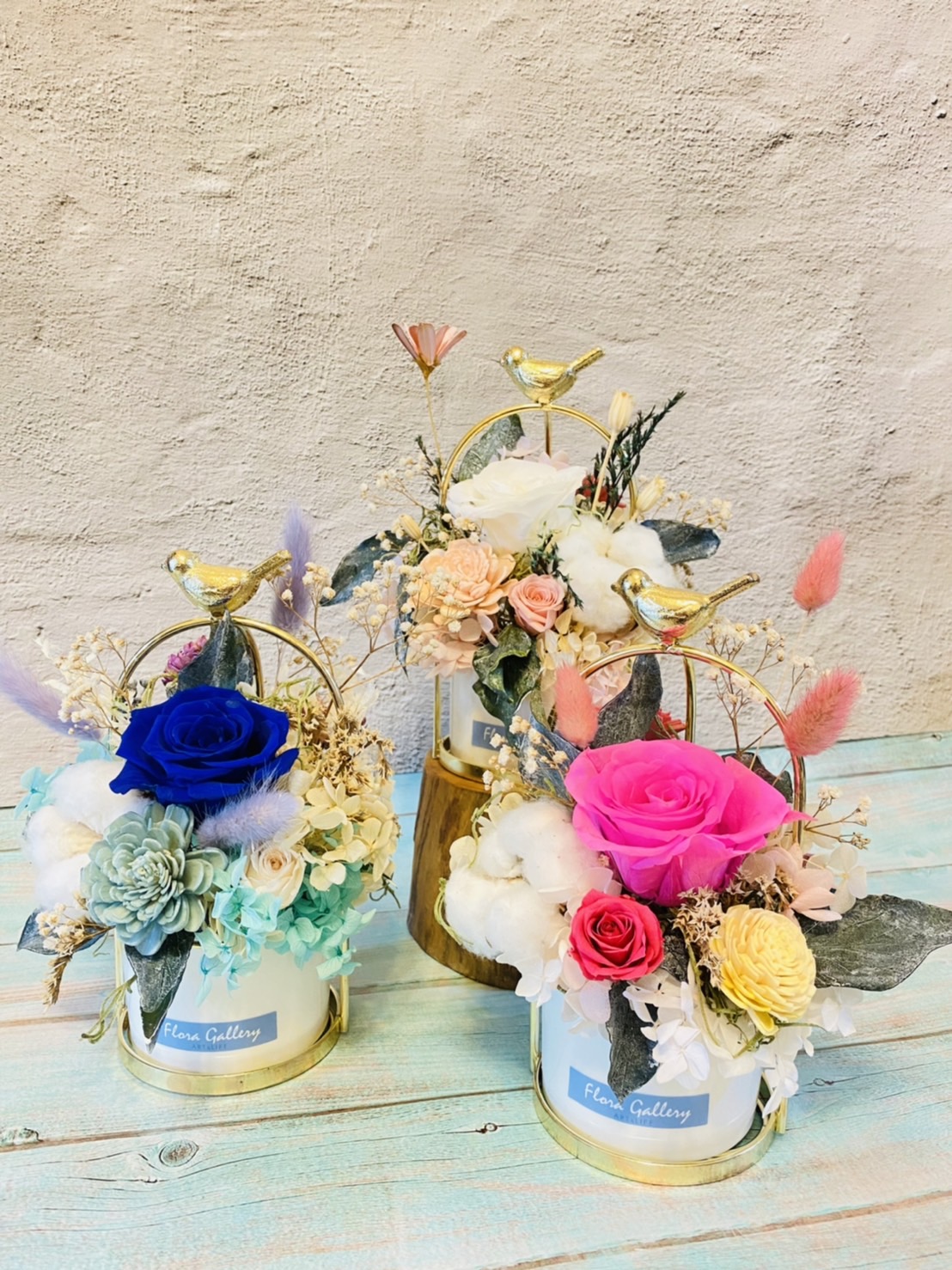 教學內容:永生花及乾燥花材搭配與固定方式教學、基礎構圖講解,親手製作屬於個人風格的永生玫瑰小桌花,成為送給情人最佳選擇的花藝禮物~