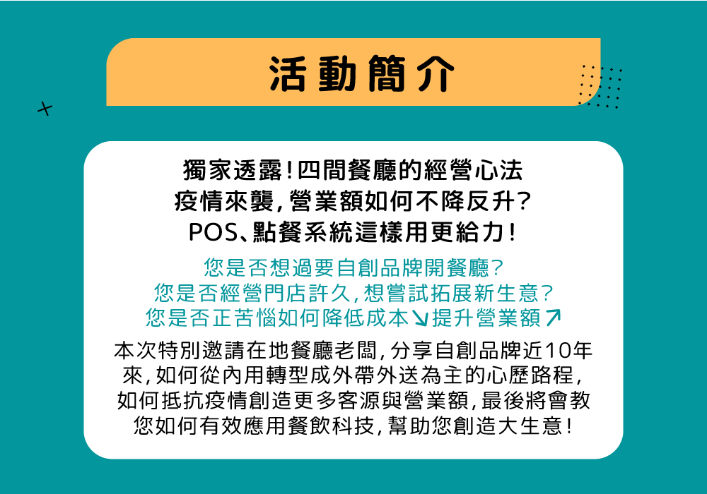 餐廳轉型實戰經驗大公開 活動介紹
