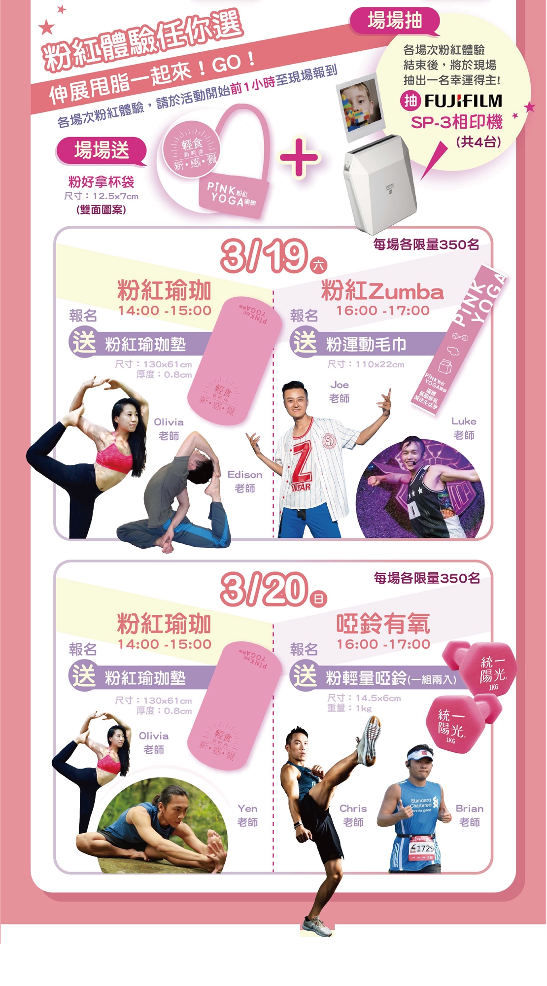 四場粉紅體驗擇一挑選,邀您一起放鬆筋骨、輕鬆甩脂!