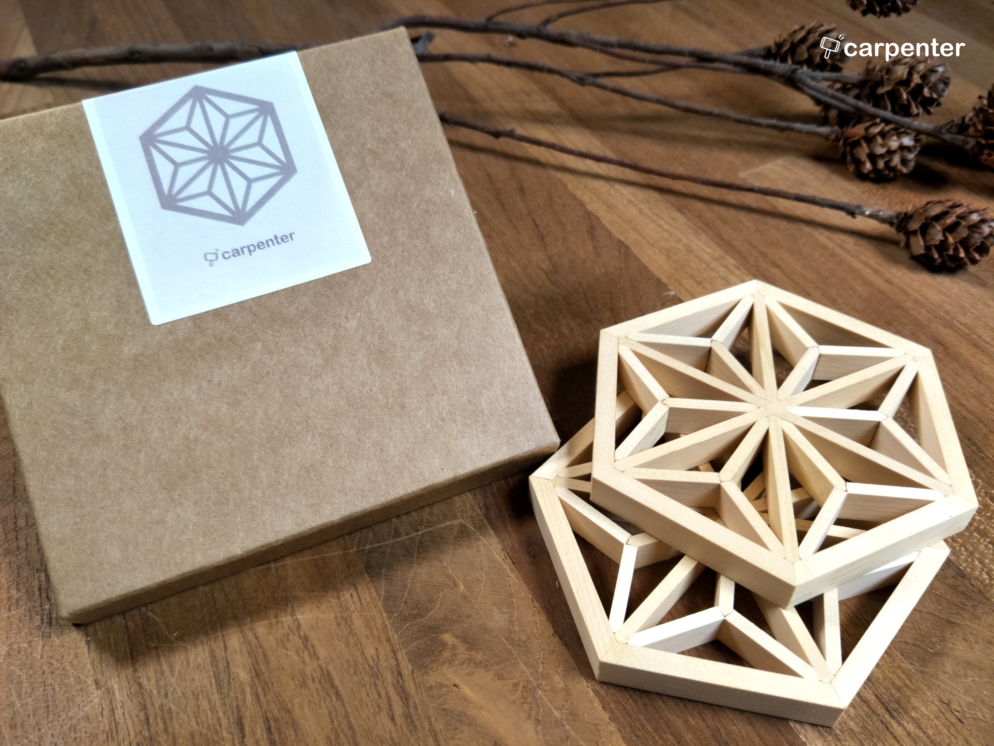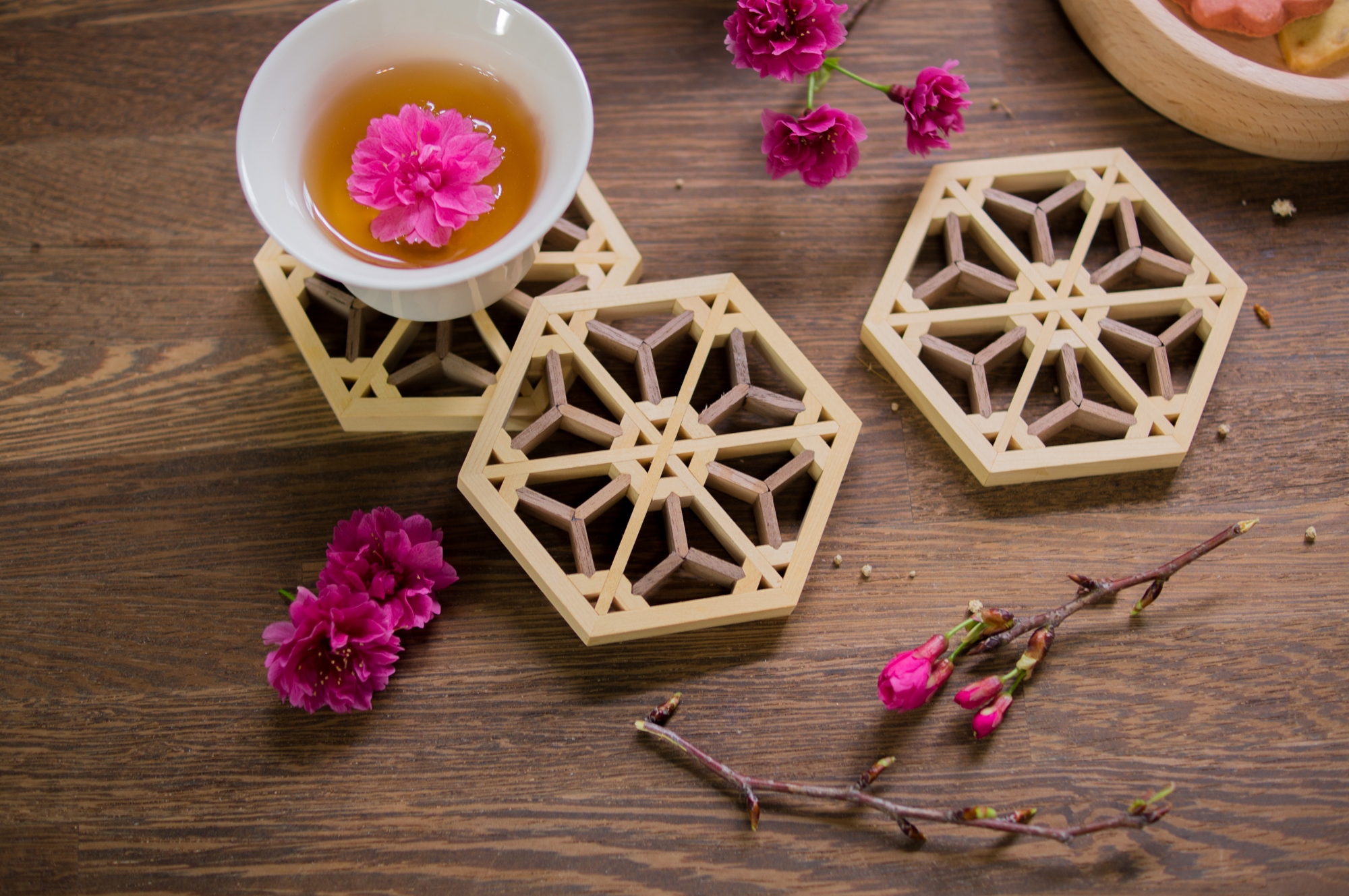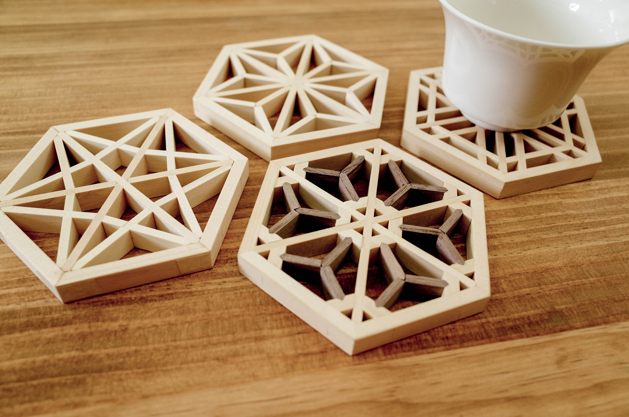 組子杯墊(款式龍膽、麻葉、胡麻、櫻花) 乙個