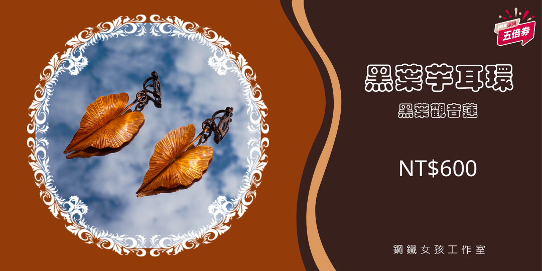 金工●獨特●寫實派─黑葉芋耳環│台南鋼鐵女孩工作室