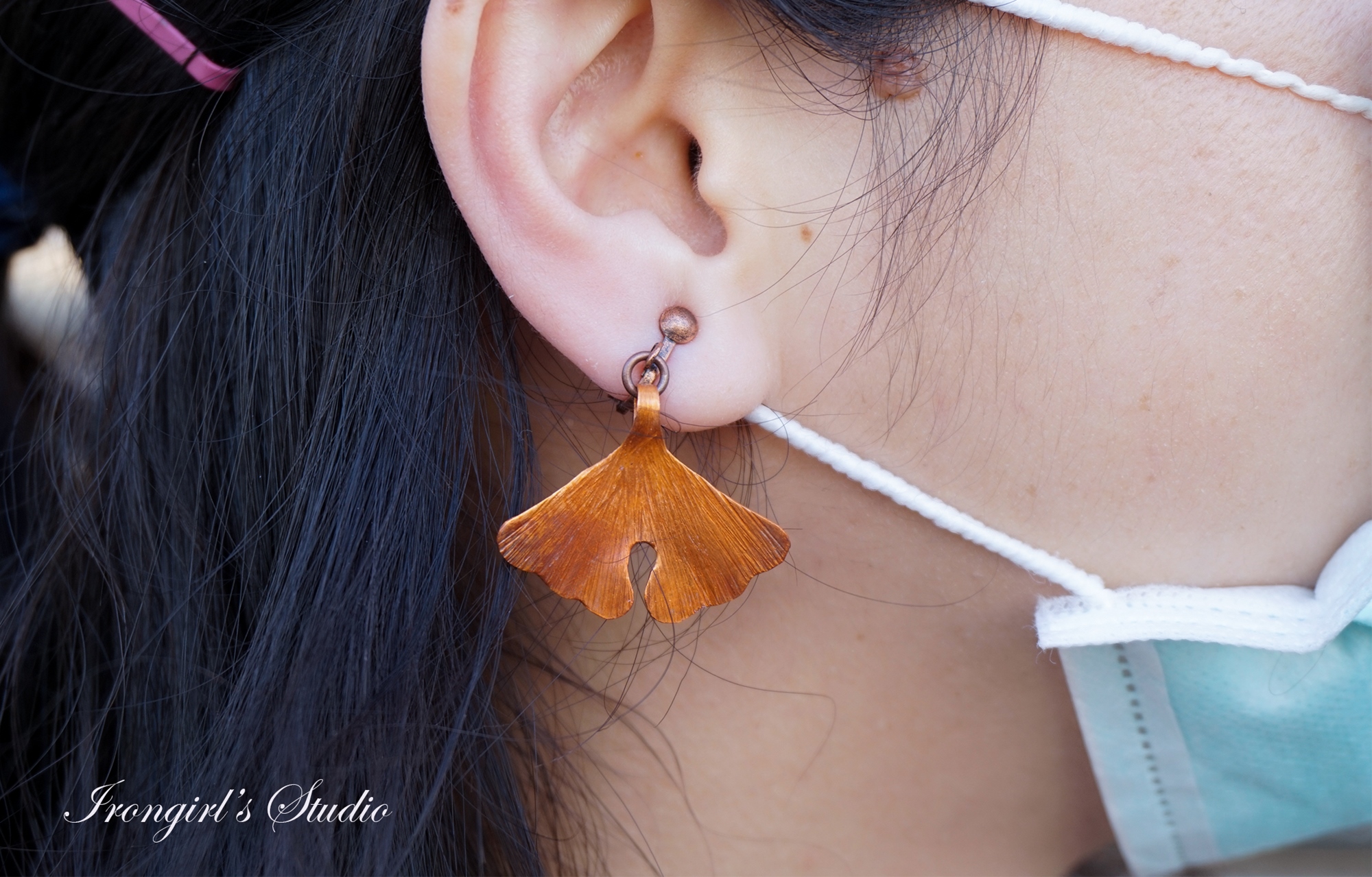 金工●獨特●寫實派─銀杏葉片耳環│台南鋼鐵女孩工作室