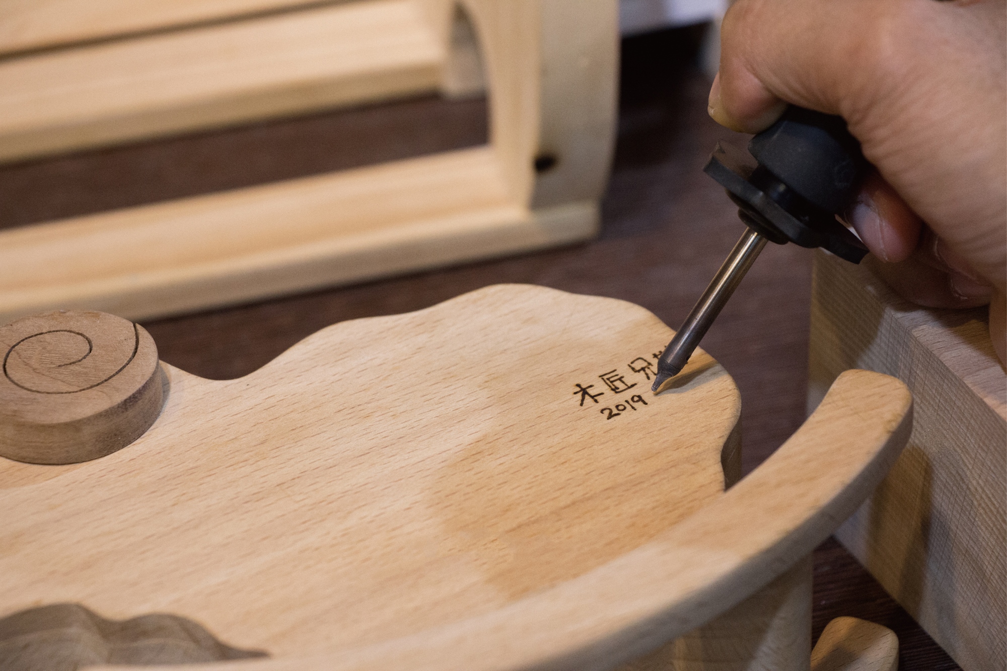 刨刀切面、兩道磨砂拋光、烙印雕刻、保養上油
