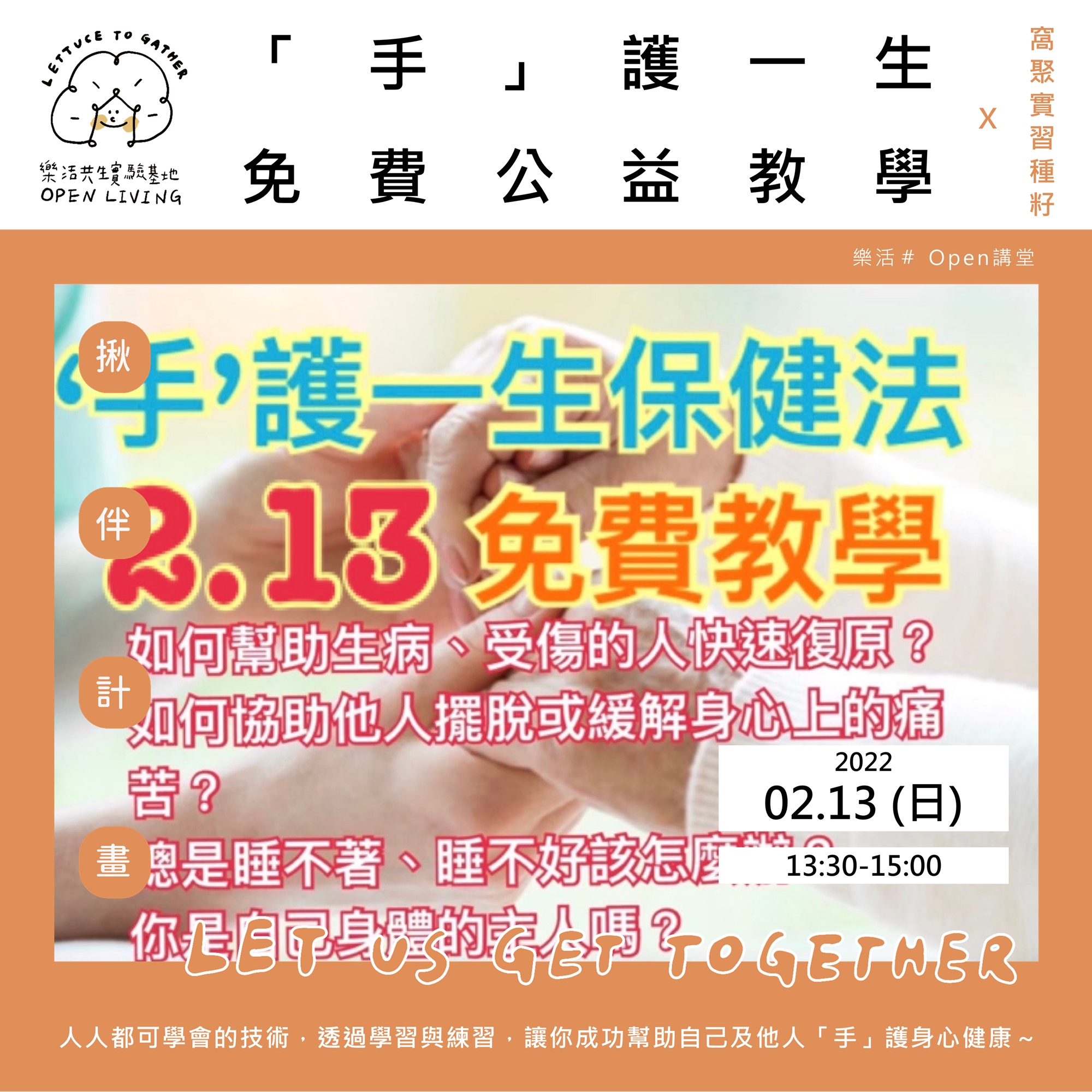 樂活基地二月免費活動 x |「手」護一生免費公益教學|<揪伴2.0計畫 系列活動>