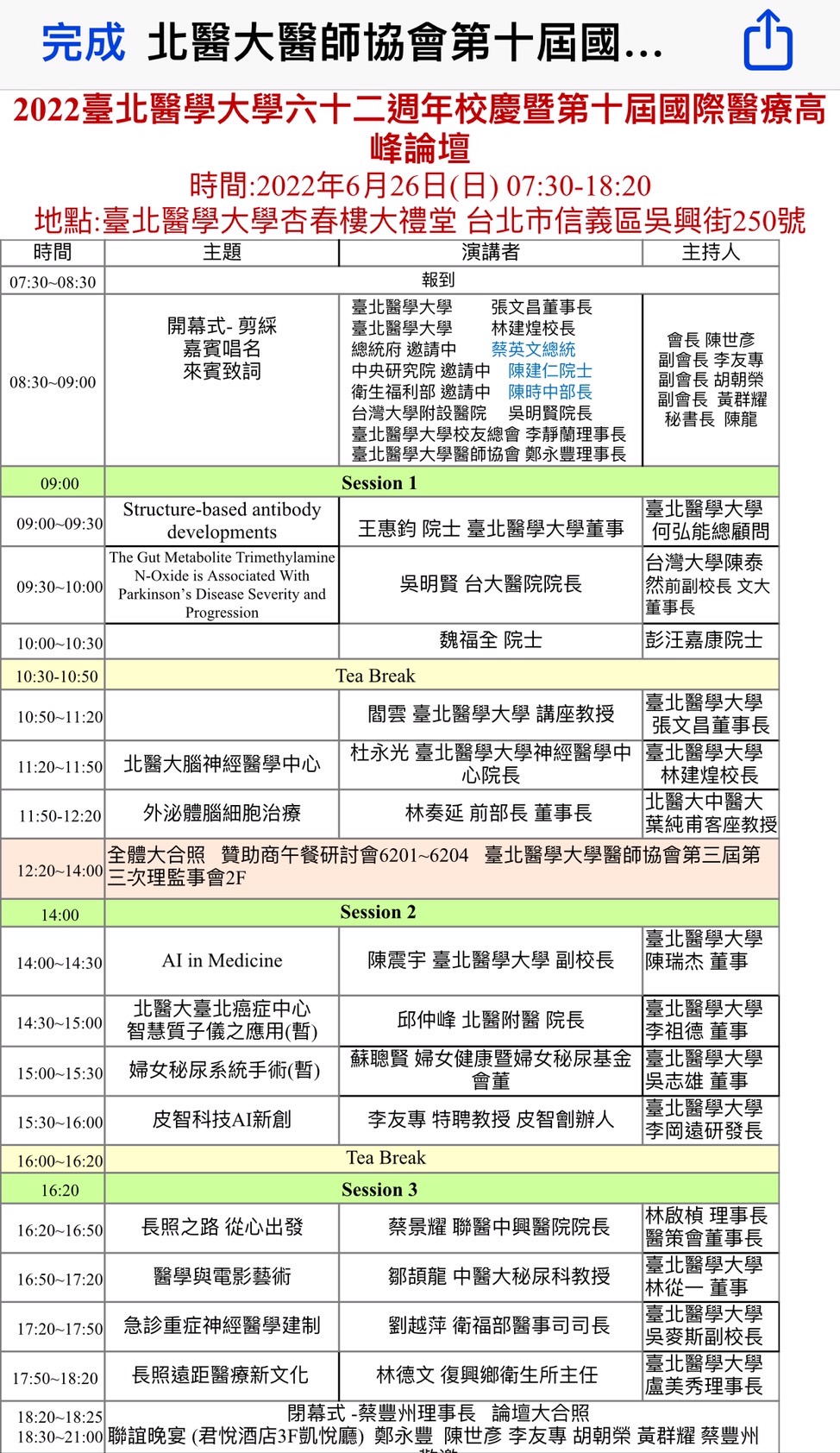 2022第10屆國際醫療高峰論壇暨北醫62週年慶論壇 延後至疫緩