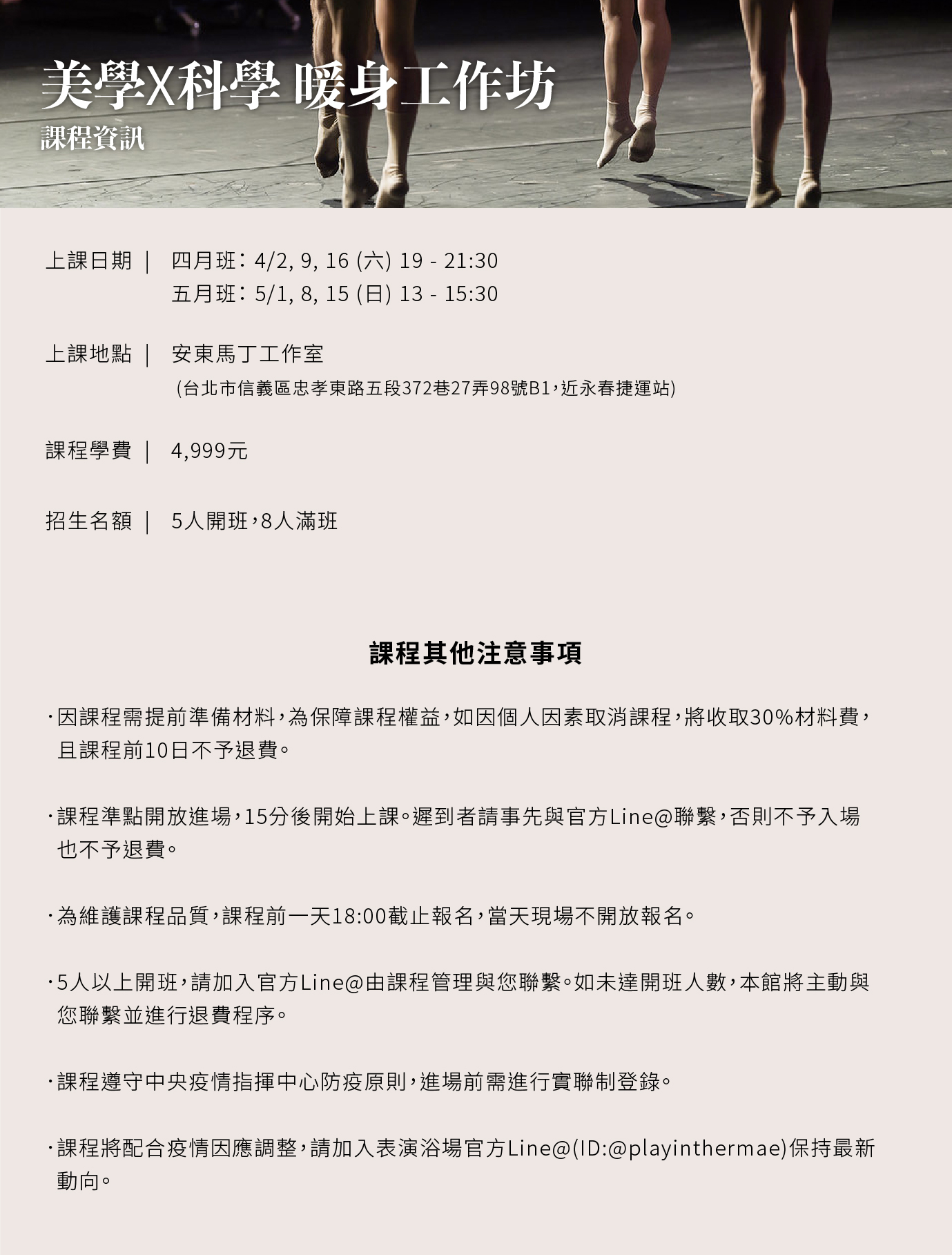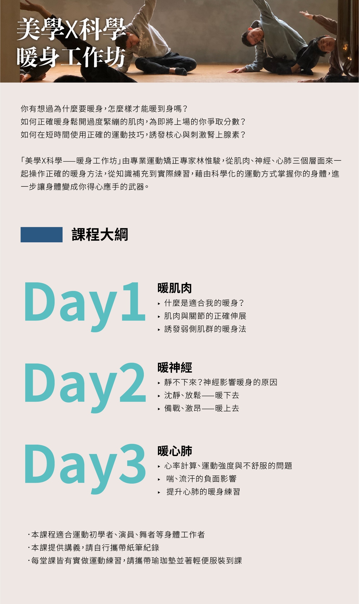 美學X科學-暖身工作坊| 暖上去、暖下去——自我啟動的運動法