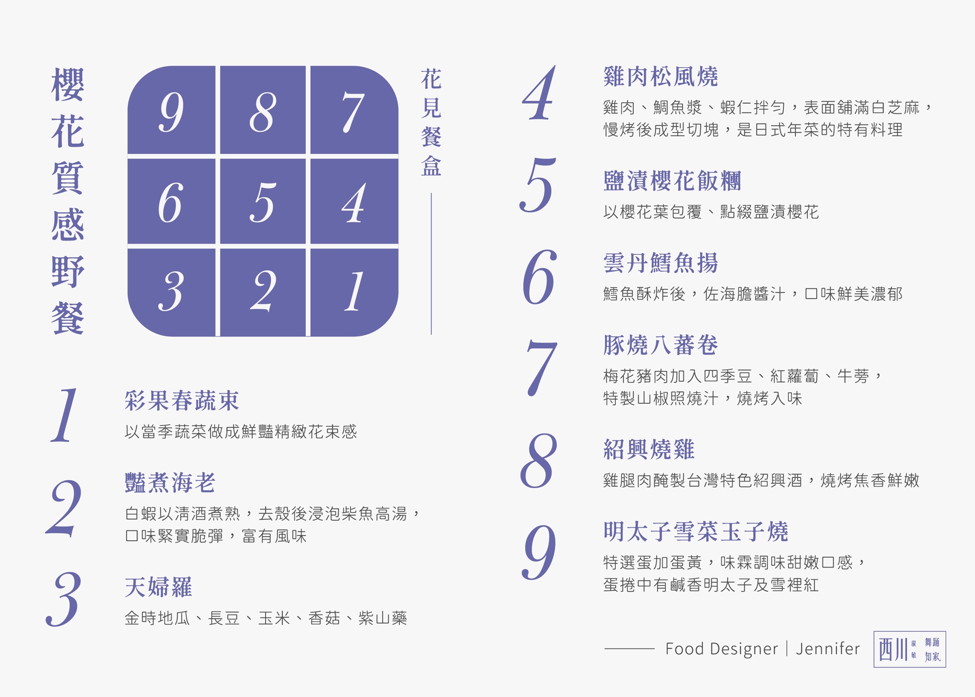 除了特別邀請 Food Designer 國際精品美食設計師 Jennifer 為本次饗宴客製限量款精緻野餐料理,我們也設計了一套專屬獨特的用餐流程,每一味都充滿巧思。