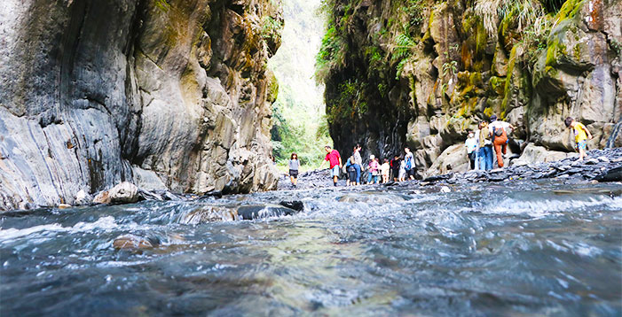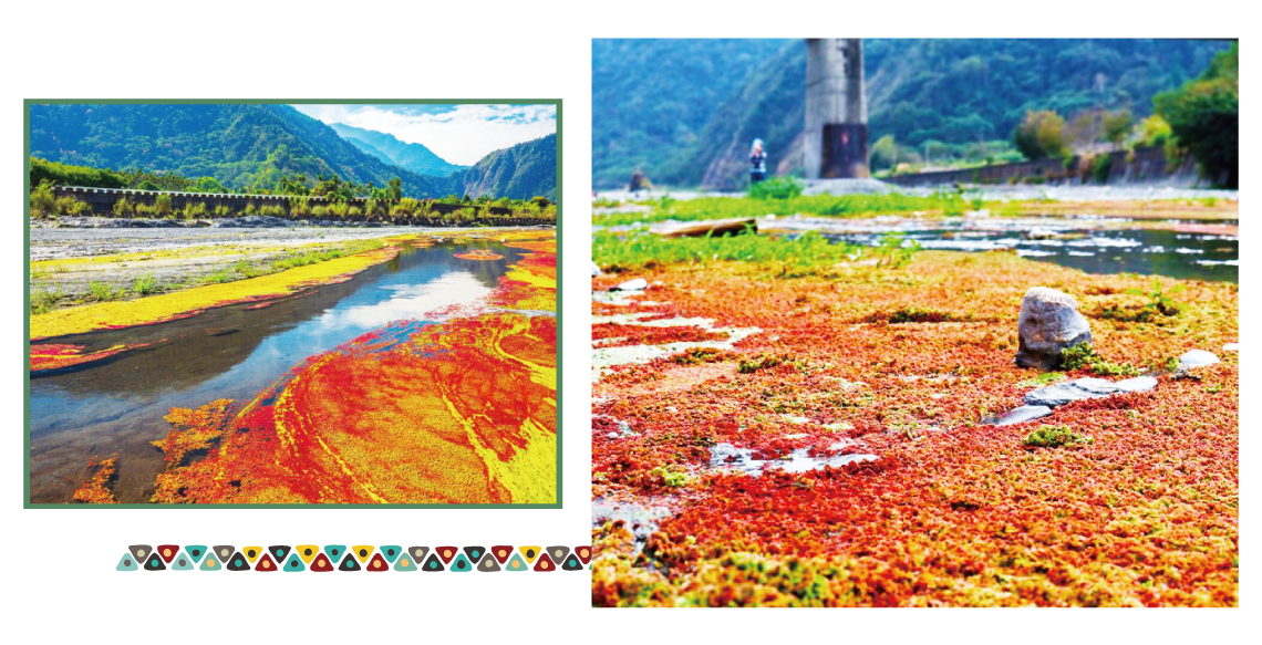 同一時間除了櫻花外,武界還有一種特殊的滿江紅奇景,鋪蓋在濁水溪河床上,為滾滾溪流彩繪上美麗的顏色,不用遠赴國外,在武界部落就可以看得囉!
