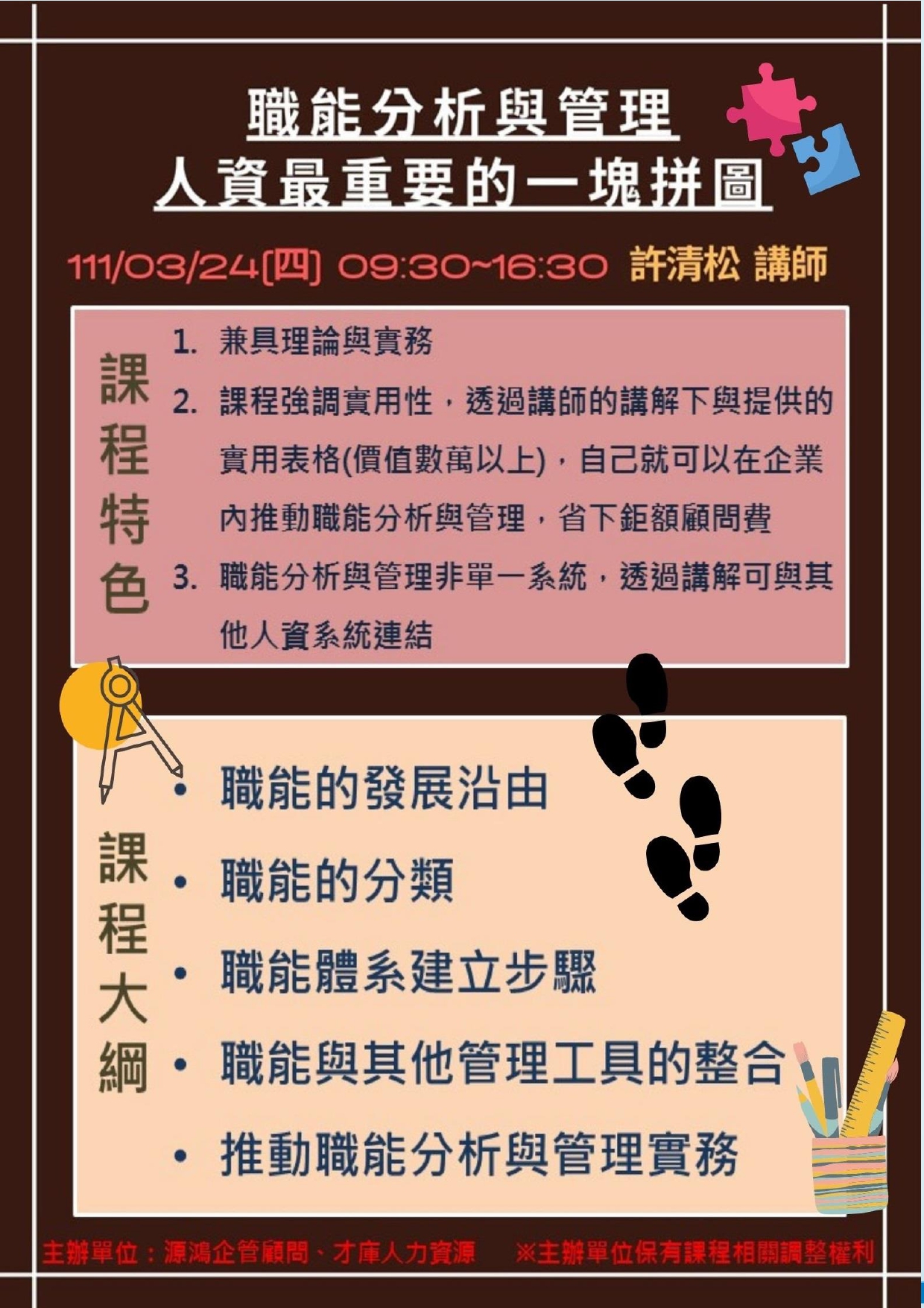 ※如遇不可抗力因素,主辦單位保留課程內容、時間及授課方式(實體/線上)調整之權力