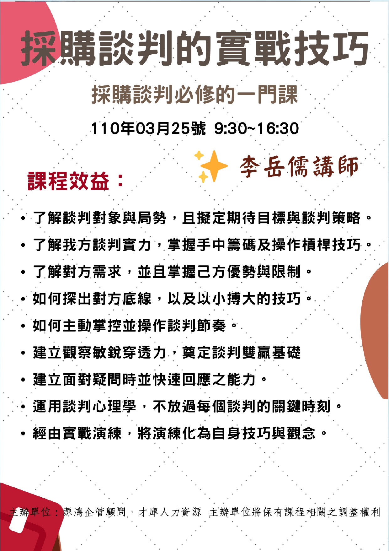 §多人(2人以上)報名另有折扣,請致電源鴻企管詢問 §