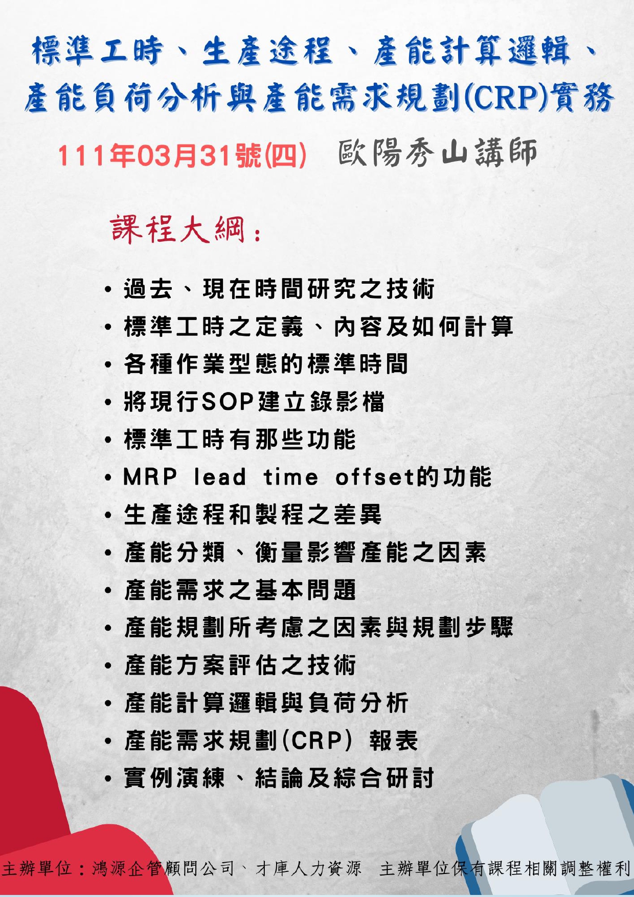 §多人(2人以上)報名另有折扣,請致電源鴻企管詢問 §