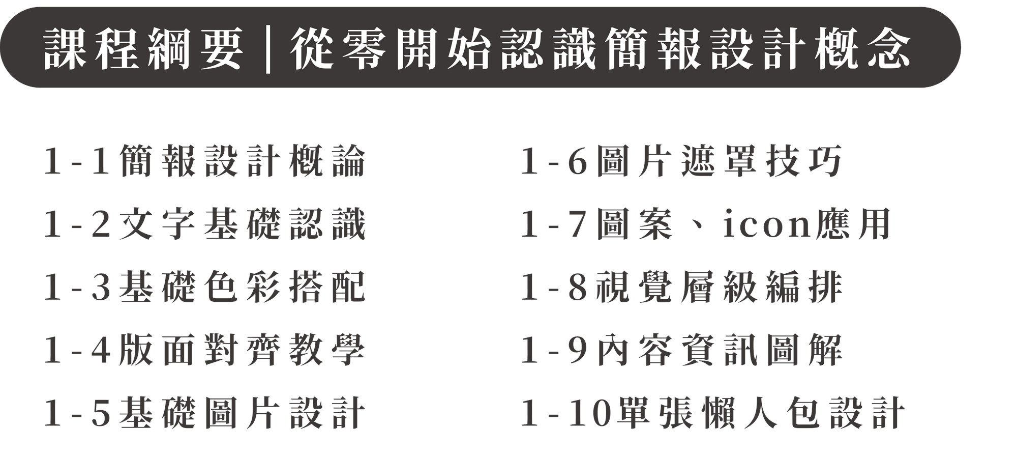 介紹簡報設計基礎概念知識、工具應用及資訊梳理的方法,幫助學員具備簡報設計的扎實基礎。