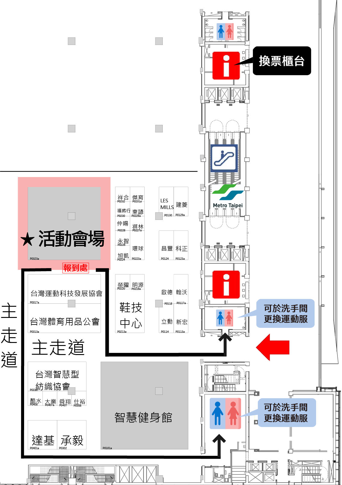 ▲舞台區無設置更衣間請於附近洗手間更衣或著運動服及運動鞋前往活動會場