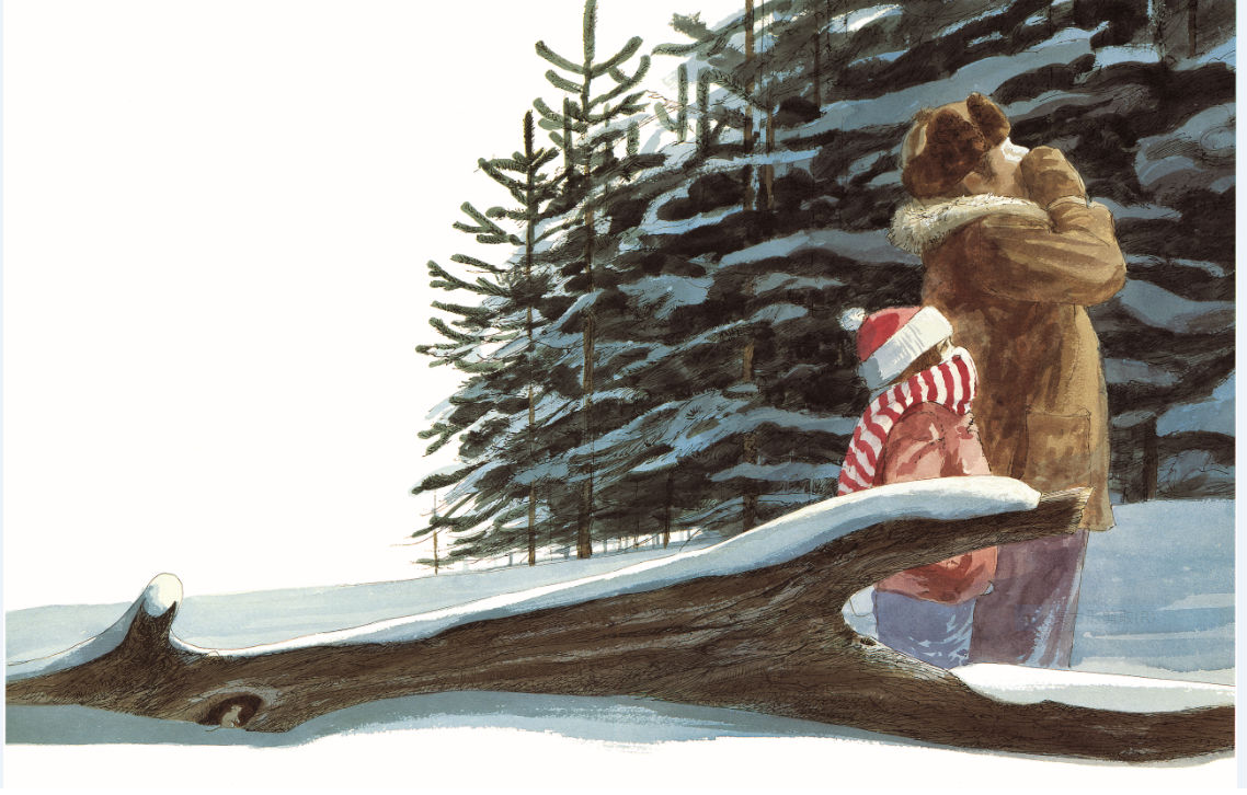 為了看貓頭鷹,小女孩跟著爸爸,穿過白雪皚皚的冬夜深林,忍受寒泠、黑暗、疲累與危險,因為她知道:「出去看貓頭鷹,一定要安靜,一定要堅強,一定要勇敢。」優美的散文故事與凱迪克金獎的圖畫,讓父女情誼更顯真摯動人。