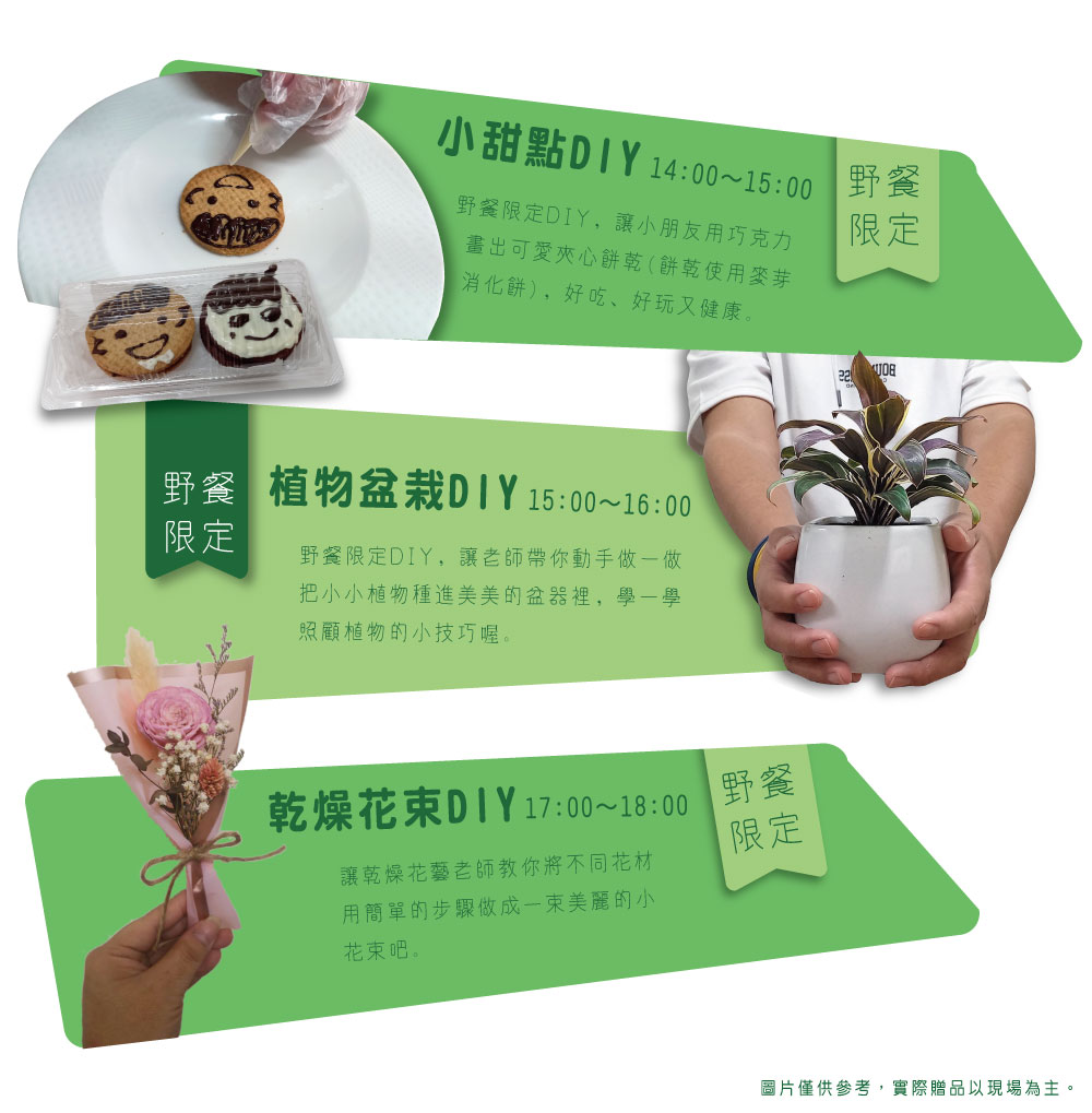 A:DIY體驗是專門為報名野餐遊客準備的,