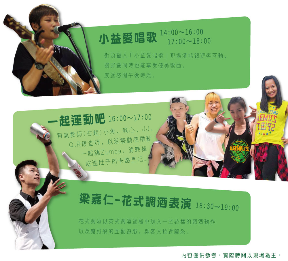 也會錯過DIY體驗跟表演活動時間喔。
