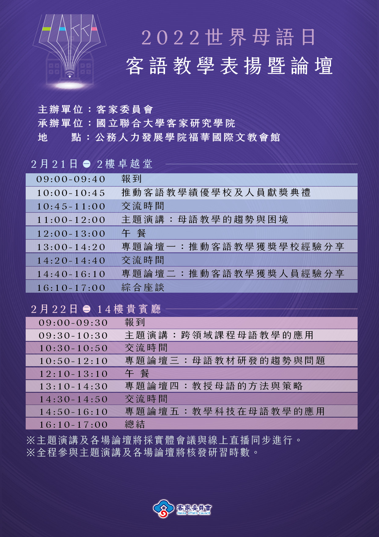 2.線上:本會視訊會議室第3間 https://hakka3.webex.com/meet/hakka