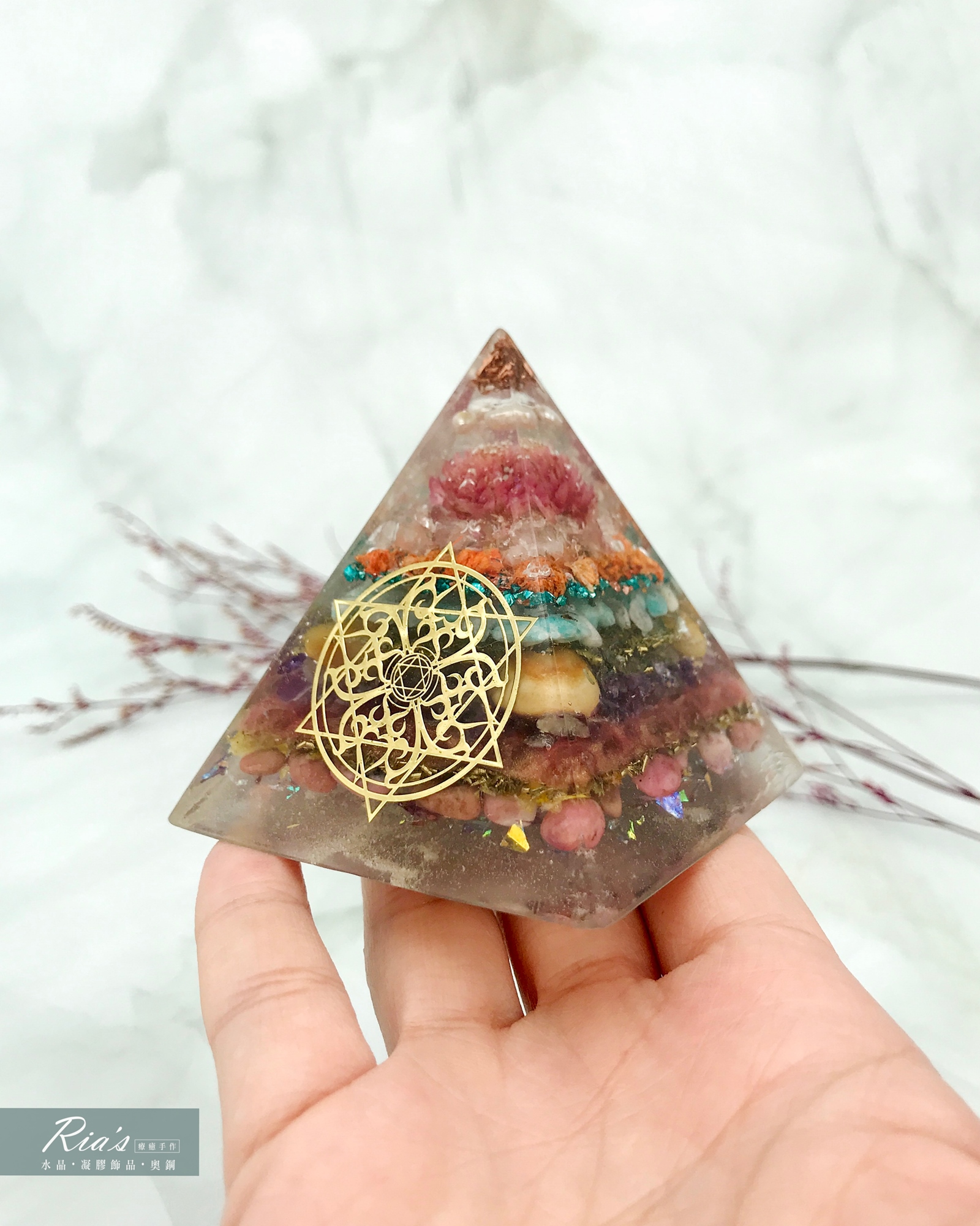 藉由印度脈輪系統從『心』去探索自我的內在課題,把心靈能量化成創作力,結合天然石的磁場創作出自己的奧鋼金字塔。