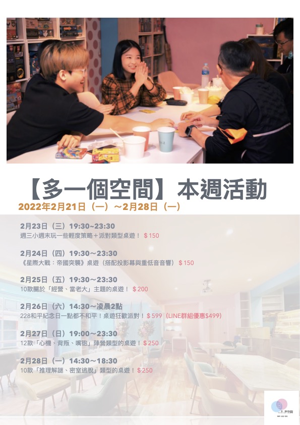 ❗️23:30~ 續攤繼續聊天玩桌遊(可以玩桌遊到凌晨)