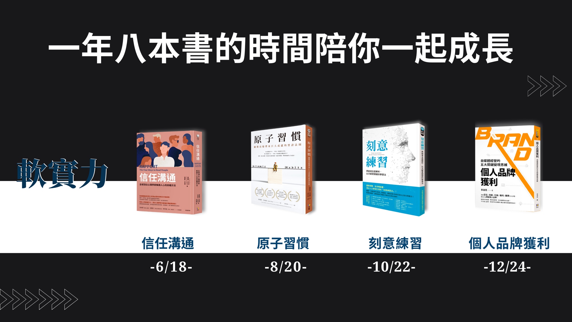 用一年八本書的時間陪你一同成長,透過深入淺出的線上共讀,完整你的軟實力與硬知識。